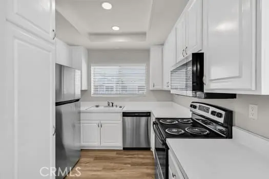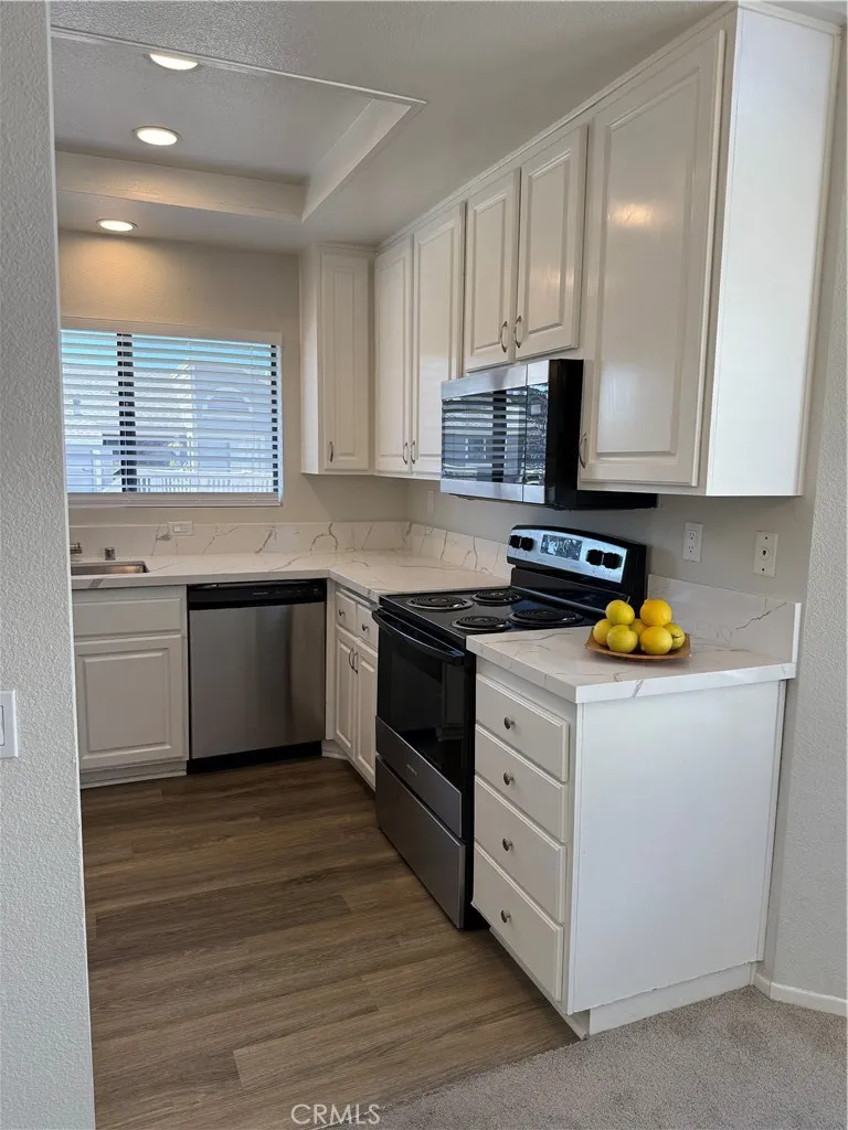 Price Reduced! Welcome to this light-filled upper-level condo in the highly sought-after Horizon community, located in the desirable Northwood neighborhood of Irvine. Available now, this beautifully updated two-bedroom, two-bath residence offers 987 sq. ft. of comfortable, modern living with serene tree views. Step inside to an open floor plan that seamlessly connects the spacious living and dining areas—perfect for both everyday living and entertaining. The interior was remodeled less than a year ago and features new appliances, window coverings, carpet, and updated flooring, along with a new kitchen countertop and sink. The refrigerator and newer stacked washer and dryer are included in the rent, with the laundry conveniently located in the in-unit laundry closet. Additional highlights include generously sized bedrooms, vaulted ceilings, neutral vinyl flooring, and newer carpeting throughout. The home also includes a detached two-car garage shared with one other unit. Residents enjoy access to community pools and spa, as well as nearby parks. Ideally located just minutes from top-rated schools, shopping, dining, and easy access to the 5 Freeway, this home combines comfort, convenience, and excellent value. Priced for immediate occupancy and available now!