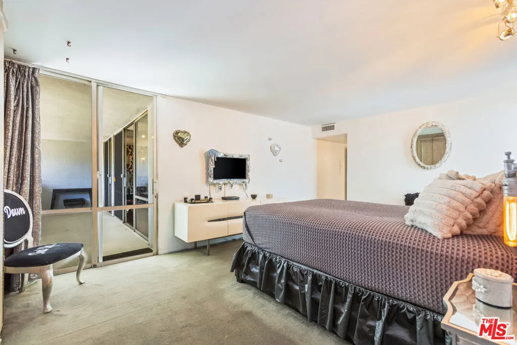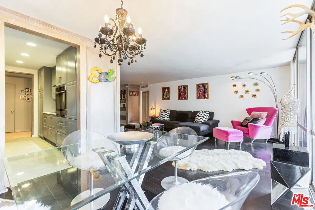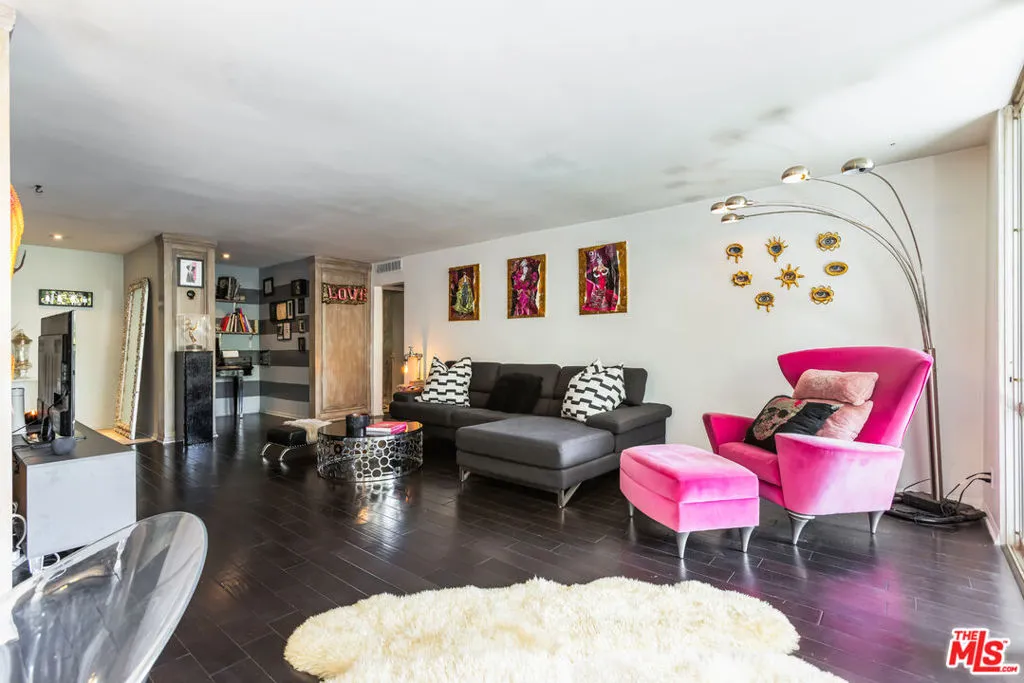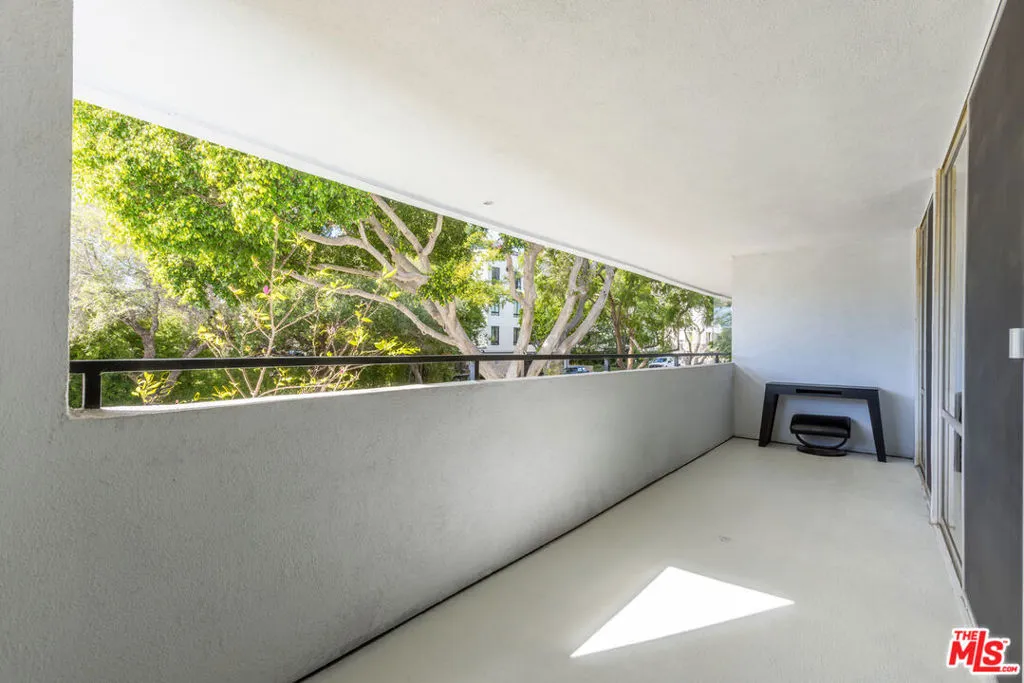 Located in the iconic mid century Kings Plaza, this recently remodeled West Hollywood condo offers a refined, moody aesthetic with timeless architectural appeal. Updated with a darker, more dramatic palette, the home balances elevated design with everyday comfort. With over 1,000 square feet of living space, it is among the largest one bedroom residences currently available in West Hollywood. Espresso toned hardwood floors run throughout, anchoring the open living space. Floor to ceiling glass sliders bring in natural light and open to a private balcony, creating a seamless indoor outdoor flow. The remodeled kitchen features sleek custom cabinetry, stainless steel appliances, and contemporary finishes. Updated bathrooms offer a clean, spa inspired feel with modern fixtures. The primary suite serves as a calm retreat with expansive windows and a comfortable, hotel-like atmosphere. In-unit washer/dryer installation is reviewed on a case by case basis and does require an architectural application and Board approval. Residents enjoy a landscaped courtyard with a heated pool and spa. Centrally located in West Hollywood, the building is moments from the Melrose Place Farmers Market, popular dining, boutique shopping, and Melrose and Santa Monica Boulevard. A standout opportunity to own a remodeled residence in one of West Hollywood's most desirable mid century buildings.