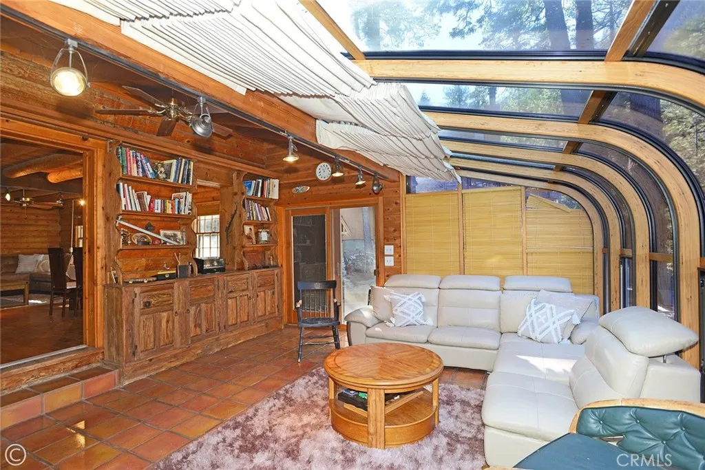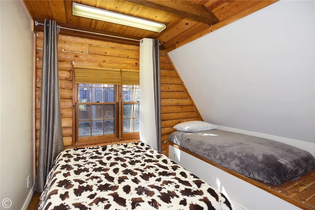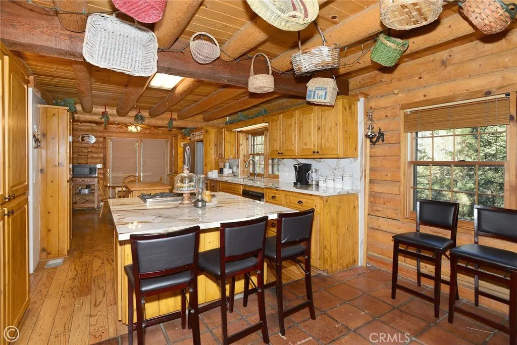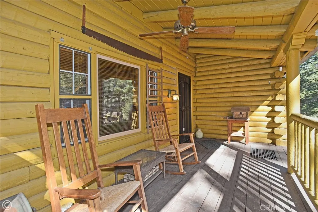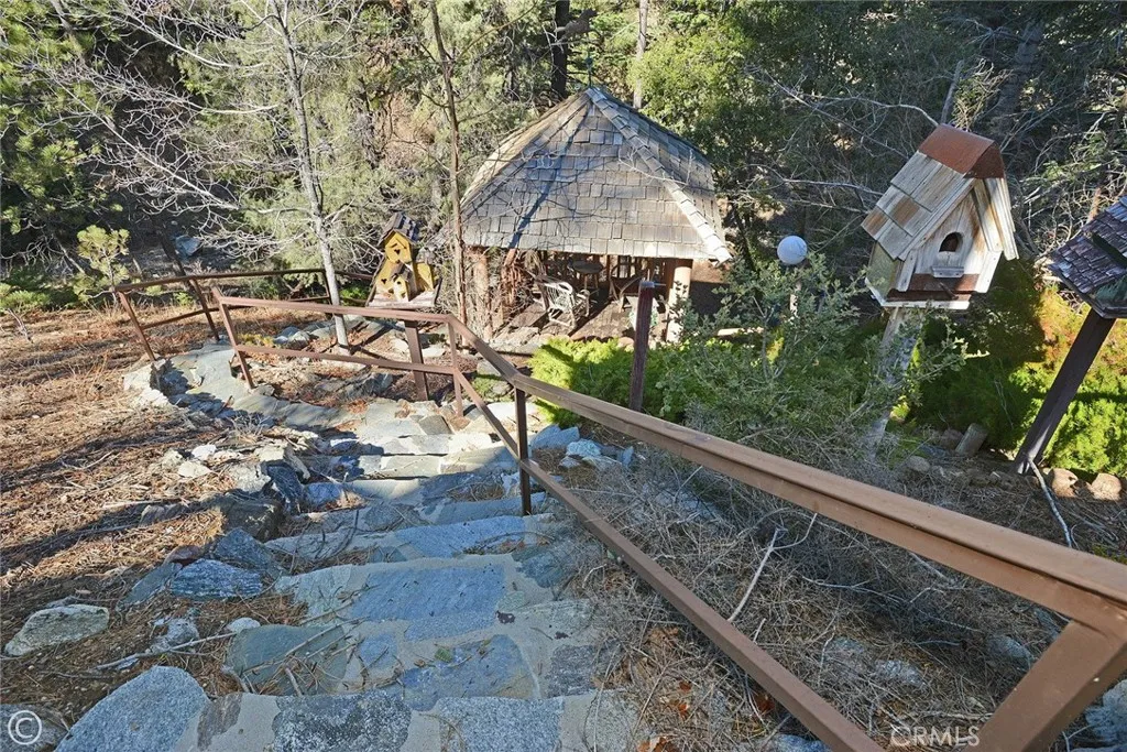 Mountain Living at its best! Enjoy this stunning secluded Log Cabin Style, private gated entry 3 bed, 2 bath retreat family home. Enter an impressive concrete stone driveway in the midst of pine trees and mountain views. Brick stairs and covered porch lead right to front door entrance. Enter an entertainers galley kitchen with extra cabinets, storage, 2 islands with seating, 2 ovens, kitchenet, laundry, wet bar, granite counters, sliding doors open to decks from the kitchen with plenty of space to entertain under the stars or your morning coffee. The main floor also includes the family room with pellet stove during cozy evenings. Ceilings are designed with logs and T&G wood, double pane wood framed windows throughout 2 stories of living. 1 full bath downstairs sandwiched between the kitchen and Living Room. The main living Room invites family and friends to gather around the pellet stove fireplace or the open dining room with a peek a boo wall stepping down into sun room, Spanish tile flooring, wood built in shelving, ceiling fan, a wall of windows with plenty of light offering panoramic views, and wood sliding glass doors leading outside. Step down to professionally landscaped outdoor entertaining areas offering multiple decks, terraced walkways, gazebo, outdoor charcoal pit, perfect for an evening of fresh air and night sky. Oversized single car garage faces properties entrance. Once entered, you are greeted with a wide wood floor staircase leading up to the Master bed, large closet, 2 guest beds, 1 full bath, windows inviting plenty of light throughout the second floor. This amazing home suggests an abundant mountain lifestyle opportunity, picture you and your family moving right in and enjoying life.