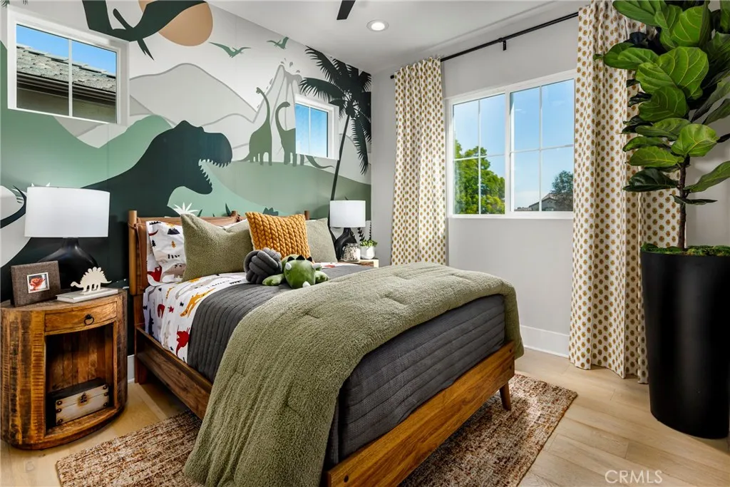 The Elina Model Home - home design offers an alluring mix of elegant design and functional living spaces. Entering through the foyer, you are greeted by an inviting open floor plan that seamlessly connects a two-story great room, casual dining area, and gourmet kitchen that features a central island with breakfast bar, wraparound counter and cabinet space, and a spacious pantry. On the second floor. The luxurious primary suite boasts a coffered ceiling, dual sinks in the primary bathroom, a luxurious shower, and a separate soaking tub. Additional highlights include secondary bedroom suites that feature roomy closets and a shared hall bath, a laundry room conveniently located on the bedroom level, and a gorgeous outdoor living area ideal for enjoying beautiful weather. House is furnished, backyard completed with pool and outdoor fireplace. Solar System included. Move in Ready Condition. Estimate delivery time is Summer 2026