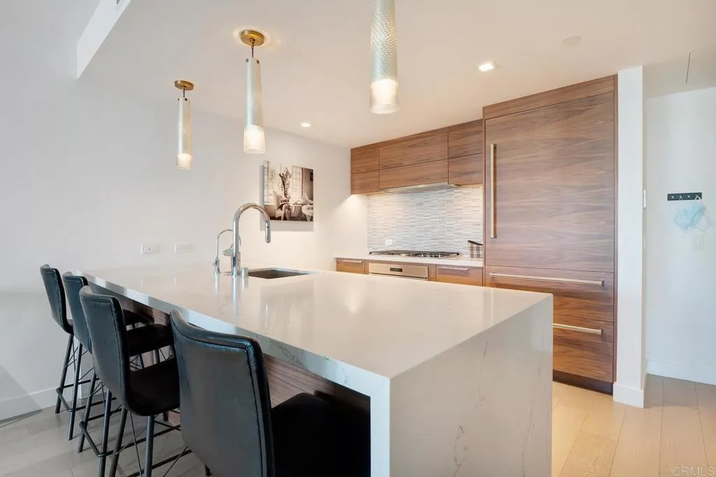 Welcome to Pacific Gate luxury living at its best! This stunning FURNISHED (it can be rented unfurnished) 2-bed, 2-bath home features city views, a private balcony, wood floors, and high-end finishes throughout. The chef's kitchen includes Wolf, Sub-Zero, and Miele appliances. Enjoy exclusive amenities like 24-hour concierge, guest suite, pet retreat, resort-style pool, fitness center, clubroom, luxury car fleet, and private yacht share. Perfectly located for shopping, dining, and entertainment, all right at your doorstep. Don't miss the chance to live in one of San Diego's most prestigious locations! 1 months deposit. $50 per month per pet. Income = 2.5x rent. Min Fico 700. Tenants pay all utilities.
