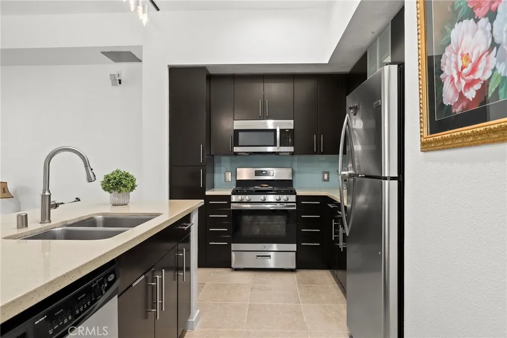Experience cosmopolitan living at its finest in this modern 1 BED | 1 BATH condo in the heart of downtown Long Beach - THE PROMENADE. This stylish soft-loft residence features an open floor plan with SOARING 10-FOOT CEILINGS, recessed lighting, exposed ducts, dual pane windows, luxurious tile floors throughout and luxury vinyl in the bedroom. The sleek kitchen offers stainless steel appliances and an oversized island ideal for entertaining. Step onto your PRIVATE BALCONY OVERLOOKING THE COURTYARD AND TRANQUIL FOUNTAIN, creating a peaceful urban retreat. The spacious bedroom includes a flexible sliding panel door that can be easily kept or removed to suit your style. Additional conveniences include CENTRAL A/C & HEAT, IN-UNIT WASHER & DRYER, 1 ASSIGNED PARKING SPACE, GUEST PARKING & EV stations, shared BIKE ROOM, and a separate STORAGE CAGE. HOA dues include FIOS INTERNET, BASIC CABLE, WATER, TRASH, AND HIGH-SPEED WIFI. Residents of the acclaimed PROMENADE DEVELOPMENT enjoy a pet-friendly community with a chic clubroom, full kitchen, pool table, outdoor social patio and bar, courtyard lounge with fireplace, gym, and yoga studio. Just steps from the BEACH, MARINA, THE PIKE, PINE AVE, SHOPPING, DINING, AND NIGHTLIFE—this is URBAN COASTAL LIVING AT ITS BEST.
