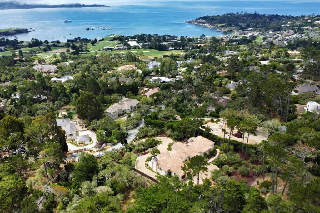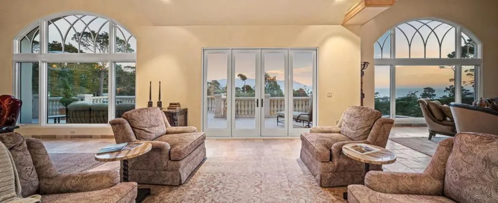 Perched on a gated one-acre parcel near The Lodge at Pebble Beach, this exceptional ocean-view estate offers a lifestyle defined by coastal beauty, privacy, and proximity to world-class amenities. Sweeping vistas span Point Lobos, Stillwater Cove, Carmel Bay, Carmel Beach, and Pebble Beach Golf Links, with dynamic white-water views and waves crashing along the shoreline visible from most rooms, each offering its own distinct perspective of the coastline and surrounding landscape. The apx 8,087 sq ft residence features a main level with soaring open-beam ceilings, stone floors, multiple fireplaces, and an expansive open-concept design ideal for both relaxed coastal living and elegant entertaining. A gourmet kitchen with custom cabinetry, dual refrigerators, dedicated freezer, and butler's pantry supports effortless hosting. The ocean-view primary suite offers a spa-like bath and tranquil retreat. The lower level includes a family room with wine bar and cellar, theater, fitness room, and four guest suites. Elevator access, two garages accommodating four cars, lush landscaped grounds, and close proximity to beaches, golf, dining, and Carmel-by-the-Sea complete this rare Pebble Beach offering.