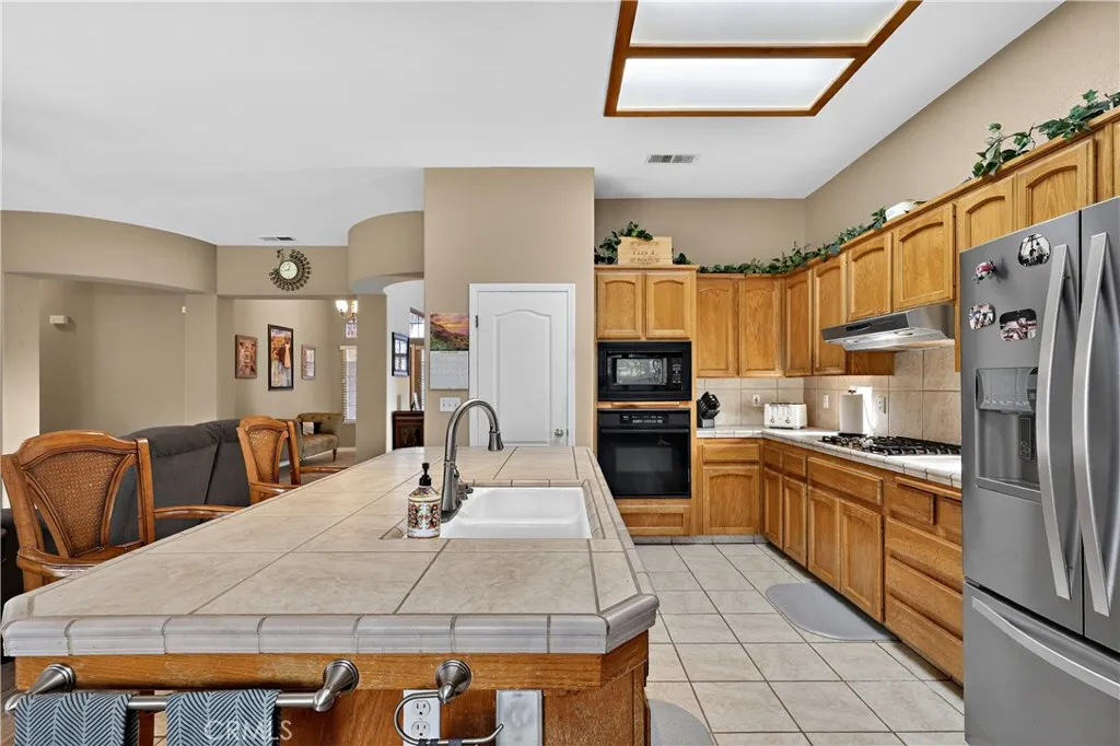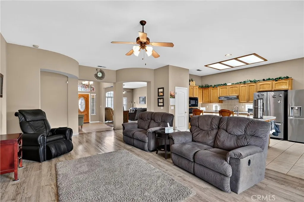 Welcome to this thoughtfully designed three-bedroom, two-bath home located in a sought-after golf course community. This single-level residence offers comfort, functionality, and low-maintenance living, ideal for both full-time homeowners and those seeking a relaxed lifestyle. The home features a beautiful open kitchen that flows seamlessly into the main living areas, perfect for entertaining or everyday living. A spacious front room offers flexible use as a formal dining area, game room, or additional living space to suit your needs. Enjoy water-saving zero-scape landscaping that enhances curb appeal while keeping maintenance and utility costs low. Step into the backyard and unwind under the pergola, creating the perfect setting for evening gatherings or peaceful patio relaxation.