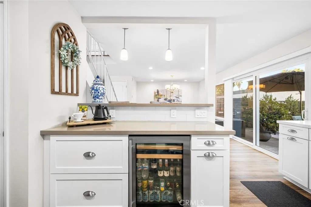 NESTLED IN A PRIME INTERIOR LOCATION WITH ALMOST 1,800 SQFT, THIS HIGHLY UPGRADED HOME FEATURES IMPECCABLE REMODELING THROUGHOUT, IN THE FABULOUS COMMUNITY OF CYPRESS VILLAGE! This exciting opportunity begins with a lush greenbelt pathway to the front gated courtyard & gorgeous new Shaker-style front door with frosted sidelights, creating natural light & privacy. Once inside, you will notice the spacious living room, the seamless finish of the modernized gas fireplace, recessed lighting, a smooth ceiling, and a neutral interior paint palette, immersed in an abundance of sunshine. Entertaining is easy with a well-appointed dining room & bar height dining counter with elevated lighting, luxury vinyl plank flooring, and an enchanting patio view. The expanded & redesigned kitchen is absolutely stunning, boasting white shaker-style soft-close cabinetry with pull-outs, quartz counters, sleek glass tile backsplash, a suite of KitchenAid appliances, a glass-door beverage fridge, & a durable granite composite sink. The relocated laundry, to the upper level, provides exceptional counter & storage space. A charming, remodeled powder room completes the lower level! You will love the enormous primary suite featuring a 2nd remodeled fireplace, upgraded lighting, cedar-lined walk-in closet, stylish barn doors, luxurious ensuite bath, & a beautiful walk-in shower with a frameless glass door. The upper level also offers two sizable guest bedrooms with ceiling fan lighting & mirrored closet doors, a third stylishly designed full bath, and a professionally relocated laundry including the washer & dryer. Additional amenities: Gorgeous dual-pane windows & sliders, luxury vinyl plank flooring, newer a/c & furnace, smooth ceilings, tankless water heater, two-panel doors, elevated lighting, quality window treatment, modern hardware, high baseboards, and upgraded plumbing. Step outside & enjoy the low-maintenance backyard patio, perfect for family & friends to gather, and a 2-car garage. Award-winning local schools are Patton Elementary, Bell Intermediate, & Pacifica High School, and all are highly rated 9's & 10's. Enjoy proximity to shopping, dining, local parks, Costco, and Trader Joe's. Wonderful Cypress Village has 3 Pools, 3 Clubhouses, a Huge Spa, a Kiddy Pool, Tennis, Pickle Ball, Lush Greenbelts & Meandering Pathways, & a low HOA of $399! Enjoy resort-style living in this premier community with the world-famous beaches of Orange County just a few miles away!