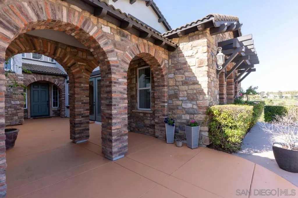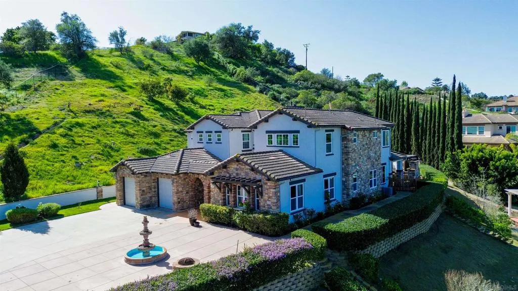 310 Highland Oaks Court offers 4,096 square feet of beautifully curated living with 5 bedrooms, 4.5 bathrooms, and a fully fenced 1.86-acre estate setting. Set behind a private, palm-lined gate, this Mediterranean-style residence blends timeless architecture with a relaxed, resort-inspired lifestyle. Light-filled interiors, hardwood flooring, and generous living spaces create an effortless flow for both intimate gatherings and larger entertaining. The kitchen serves as the heart of the home, featuring granite countertops, a walk-in pantry, and premium appliances, seamlessly connecting to the main living areas. The primary suite is a true retreat, complete with a fireplace and a spa-like bath accented by striking teak wood countertops. Thoughtful design and scale throughout the home allow for flexible living, hosting, and everyday comfort. Outdoors, the property unfolds into multiple entertaining spaces with gazebos, a built-in BBQ, and a tranquil water feature, all surrounded by mature landscaping and open sky. Additional highlights include fully paid solar and an electric vehicle charging station, enhancing both lifestyle and long-term value. With privacy, acreage, and refined indoor-outdoor living, this is a rare offering in Fallbrook.