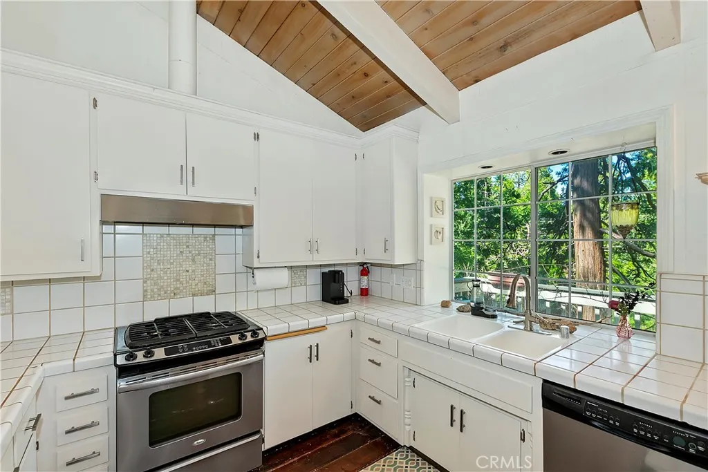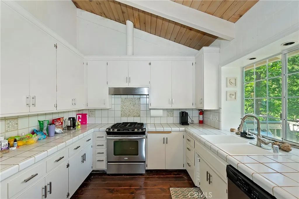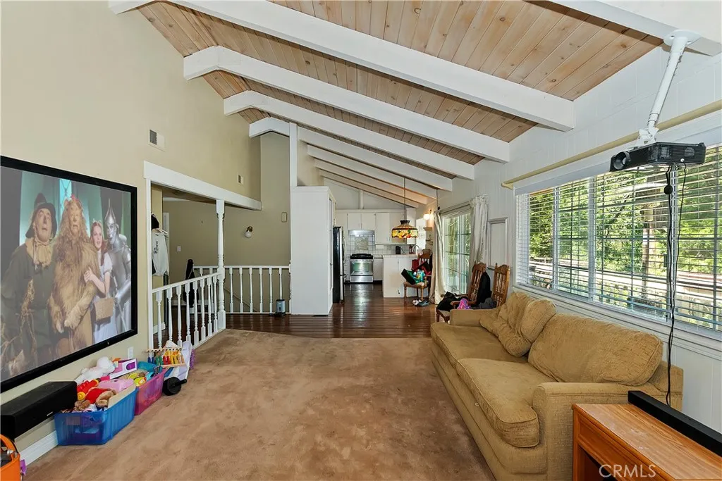Nestled in the desirable, San Moritz neighborhood of Crestline, this 4-bedroom, 2 bathroom home offers a perfect blend of comfort and convenience. Featuring a great, open layout for spacious living, while located only a short drive to Lake Gregory / Crestline Village, Goodwin's Market, and other amenities. Situated on two well landscaped lots, the property features a rock waterfall feature, mature trees, lush greenery, and a sprinkler system to maintain its well-established appeal. The entry leads to the lower level where you'll find the primary bedroom / en suite bathroom with a faux fireplace and luxury vinyl plank flooring, also an additional bedroom, and plentiful-built in storage. The upper level / main living area welcomes you with a cozy living room highlighted by a wood-burning fireplace and tongue-and-groove ceilings that add warmth and character. A galley-style kitchen opens to a spacious wraparound deck, perfect for outdoor dining or enjoying peaceful mornings among the trees. This level also includes two additional bedrooms and a full bathroom. One-car garage plus driveway parking for 2-3 cars. An included adjacent parcel further enhances the property, offering potential for future improvements. Full of potential, it’s the perfect mountain retreat or full-time residence. Priced to SELL !