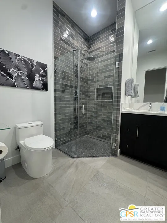 Step inside this striking Fiore model-an architectural single-story masterpiece tucked within the gated enclave of the renowned Escena Golf Club in Palm Springs. Offered furnished, Move right in. Built in 2023 and custom-upgraded far beyond the builder's finish, this contemporary residence offers 3 bedrooms, 3 baths, and 2,593 sq ft of refined interior living space on a 6,970 sq ft lot. The open-concept great room welcomes you with soaring 17' ceilings, walls of glass, and panoramic views of two golf course fairways surrounded by the towering San Jacinto Mountains. Expansive sliders erase the boundary between indoors and out, filling the home with natural light and creating a seamless indoor-outdoor experience. Oversize porcelain tile pavers extend outward from the home interior, integrating both west and north facing outdoor entertainment areas, and creating a cohesive, spacious architectural flow that perfectly complements the exterior's extended desert landscape. At the heart of the home, the chef's kitchen blends beauty and performance with a 48" Fulgor Milano 7-burner induction range and double oven, JennAir Professional side-by-side built in refrigerator/freezer, microwave and 48" professional hood, SimPure reverse osmosis water filtration system, and oversized Calacatta quartz island. Every element was designed for entertaining and everyday luxury. The primary suite is a serene retreat featuring a spa-inspired bath with floating dual vanities, soaking tub and spacious walk-in shower offering accessibility from both sides. Two additional bedrooms with en-suite offer privacy and flexibility for guests, family, or a dedicated office. Step outside to your private sanctuary, where an in-floor system heated pool, electric pool cover, and mountain views invite relaxation at any hour. Owned-Solar, Tesla Powerwall, Hague WaterMax purification system, and LG mini-split air-conditioned garage further enhance the home's smart, sustainable design. The landscaping is a true work of art - professionally designed and upgraded with custom desert plantings, sculptural accents, and custom-designed entry gates that elevate the home's architecture and create a striking first impression. Every exterior element has been curated for low maintenance and maximum impact. Within Escena, residents enjoy resort-style amenities including a championship golf course, scenic walking paths, a restaurant and bar - all just minutes from downtown Palm Springs dining, shopping, and festivals. 4321 Lumina Way is a masterclass in modern desert living - where sophisticated design, smart technology, and thoughtful upgrades combine to create an effortlessly elegant retreat.