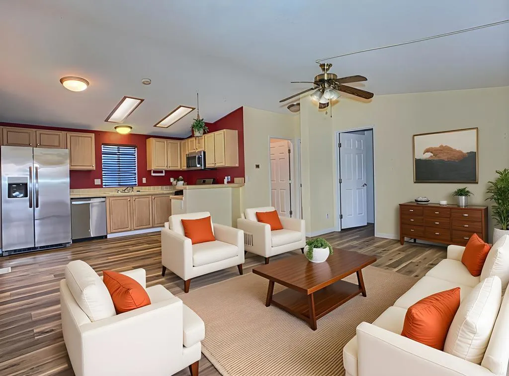 Nestled in the quiet community of Crest at Crest Skylodge South. This home offers beautiful views of rolling hills and sunsets. In this private gated community, you'll enjoy this ready to move in, 3 bedroom, 2 bath home with 1,074 sqft of living space. New Laminate flooring through out, new stainless steel appliances. Space rent at $1,050.00 upon move in. Utilities separate. Park requires application to qualify. Schedule a showing today! Some photos are virtually staged.