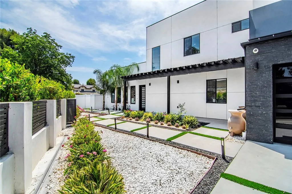 Super sexy lease opportunity in Sherman Oaks. Gated near-new construction of cherished Modern design is right here waiting for you! Inside this light & bright showplace, gorgeous hardwood flooring will make you smile. Stunning open kitchen affords a large center-island, quality Fisher & Paykel appliances and exquisite cabinetry & counters. Large living room with high ceilings offers access to the spacious rear yard with brand-new barbecue. All bedrooms are ensuite & the Primary bedroom features a dazzling private bath & large walk-in closet. Ascend the spiral staircase to enjoy an additional bed/bath & your very own massive roof-top oasis. Gated driveway parking plus a large two-car garage. Mere moments to all the shops and yummy eateries on the BLVD. Washer/Dryer & Fridge included. It doesn't get much better than this....Better Hurry!