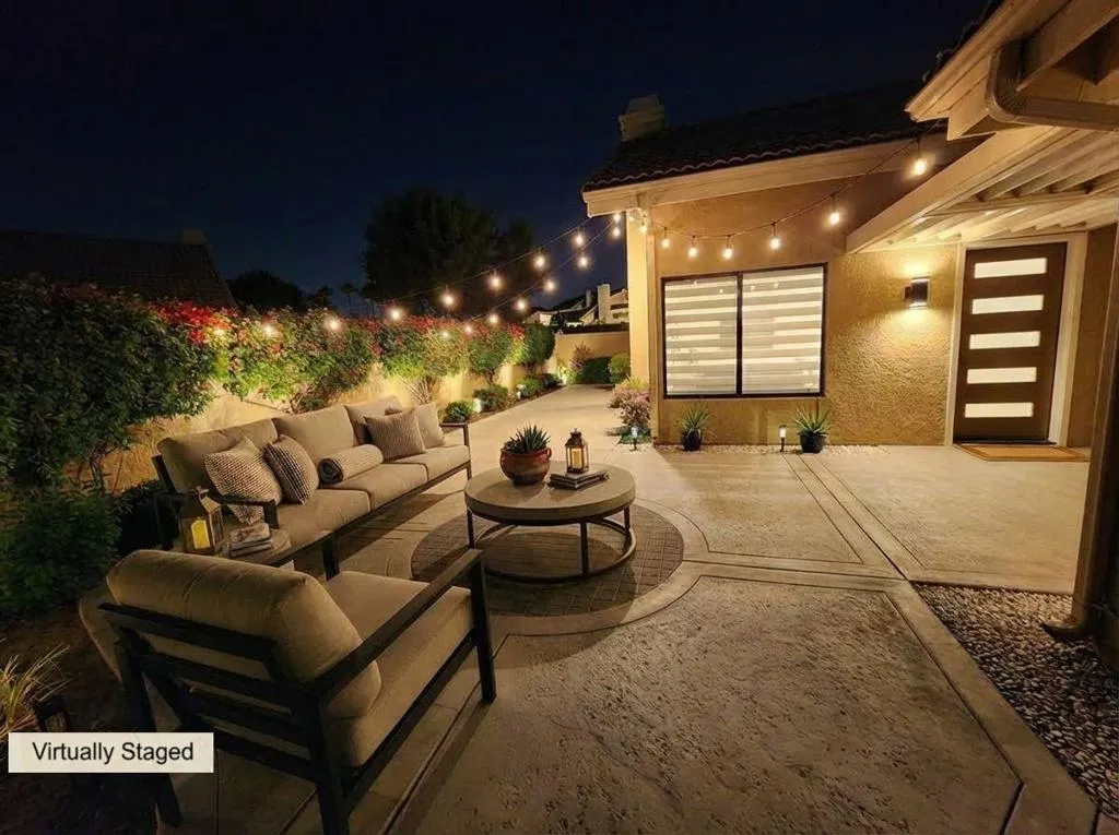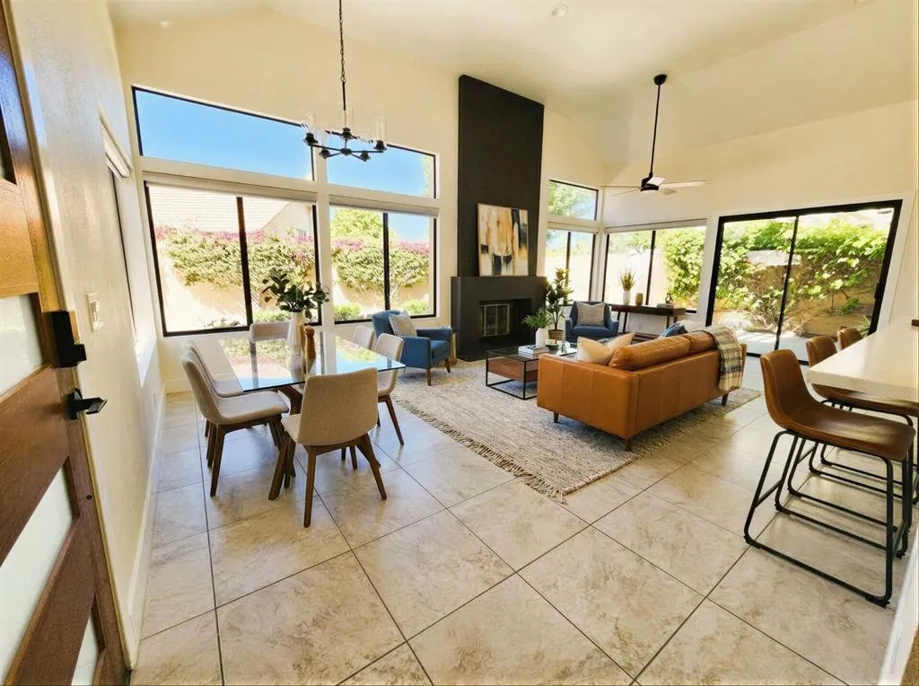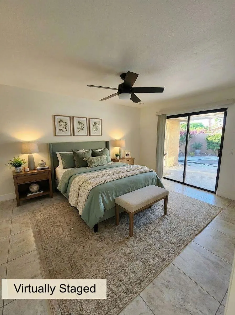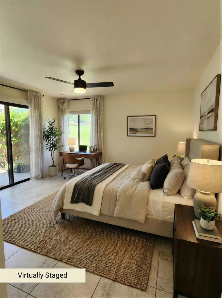 Welcome to a truly rare opportunity to own one of Silver Sands' desirable Premier Lots, ideally tucked into a quiet cul-de-sac with a shared wall on only one side. Located within the prestigious guard-gated Silver Sands Racquet Club, this beautifully upgraded, single-level G-Plan residence offers the perfect blend of privacy, style, and resort living.Soaring ceilings and an open-concept layout fill the home with natural light, creating an airy and welcoming atmosphere throughout. The interiors have been thoughtfully reimagined with a contemporary touch, featuring fresh bright paint, new baseboards, trim, interior doors, and stylish lighting and ceiling fans.The newly remodeled chef's kitchen opens seamlessly to the living and dining areas and showcases modern soft-close cabinetry, high-quality quartz countertops, a custom backsplash, and a breakfast bar-ideal for entertaining. Brand-new Samsung appliances include the latest oven with air-fryer technology and an auto-release dishwasher.The great room is surrounded by windows with solar-powered motorized shades and anchored by a cozy fireplace, perfect for cool desert evenings. This home offers two spacious primary suites, each with upgraded bathrooms featuring dual-sink quartz vanities, new ceiling fans with integrated lighting and remote controls, and easy access to the outside.Additional highlights include a climate-controlled garage with ample storage and a private courtyard with a pergola creating an ideal spot to enjoy serene desert mornings and relaxing evenings. The home also offers direct gated access to nearby pools and spas, just steps away.Silver Sands Racquet Club is one of the desert's most coveted communities, featuring only 256 homes and an unbeatable location adjacent to the JW Marriott Desert Springs Resort and across from Desert Willow Golf Resort, where Palm Desert homeowners enjoy discounted golf rates.Residents enjoy a true resort lifestyle with a clubhouse for social activities, 7 lighted tennis courts, 4 pickleball courts, on-site pros during season, a fitness center, and 15 pools and spas-all included in the HOA. HOA dues also cover roof and exterior maintenance landscaping, cable TV, internet, trash service, and 24-hour security.Silver Sands Racquet Club has everything you need to make every day feel like a vacation.