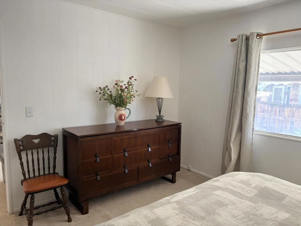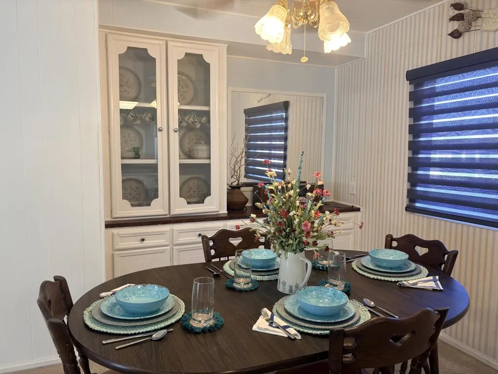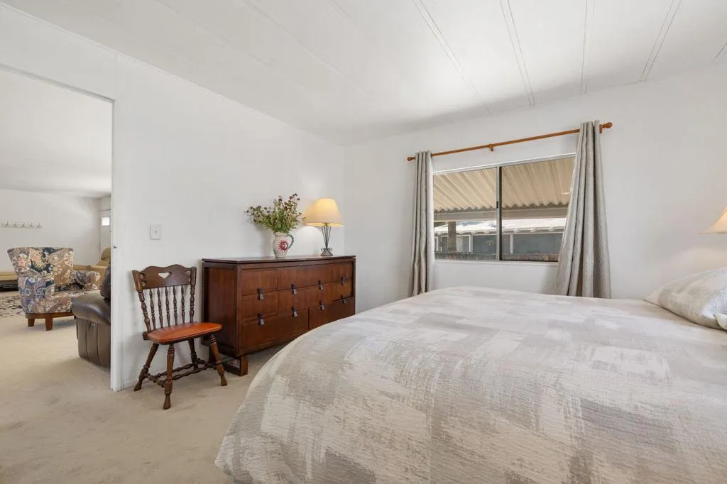 Located on LAND YOU OWN in the iconic Blue Skies Village, this lightly updated 3-bedroom, 2-bath double-wide mobile home offers 1,440 sq. ft. of comfortable desert living in one of Rancho Mirage's most sought-after senior communities. Ideally situated near the clubhouse and pool, this home combines convenience, lifestyle, and value.The spacious primary suite features a walk-in closet and an en-suite bath with soaking tub and separate fiberglass shower. Two additional bedrooms provide flexibility for guests, office, or hobbies. The home includes newer kitchen appliances, an in-house laundry area with washer and dryer, and a thoughtful floor plan that lives easily year-round.A tandem two-car carport, private storage shed, and low-maintenance landscaping add everyday practicality. Monthly HOA dues of $432 include water, trash service, cable TV, and internet, making ownership simple and predictable.Blue Skies Village is a gated 55+ community known for its midcentury charm and amenities, including a saltwater pool, exercise room, library/card room, billiards, and the architecturally significant Tanner Hall, designed by renowned modernist William F. Cody. Just minutes from Eisenhower Medical Center, El Paseo, world-class dining, shopping, entertainment, and everything the Coachella Valley has to offer. Whether you're ready to make Rancho Mirage home year-round or secure your place for the season ahead, opportunities like this are limited. See it now and start living the Blue Skies lifestyle while the season is at its best.Home is being sold turnkey furnished with staging items and personal items excepted.