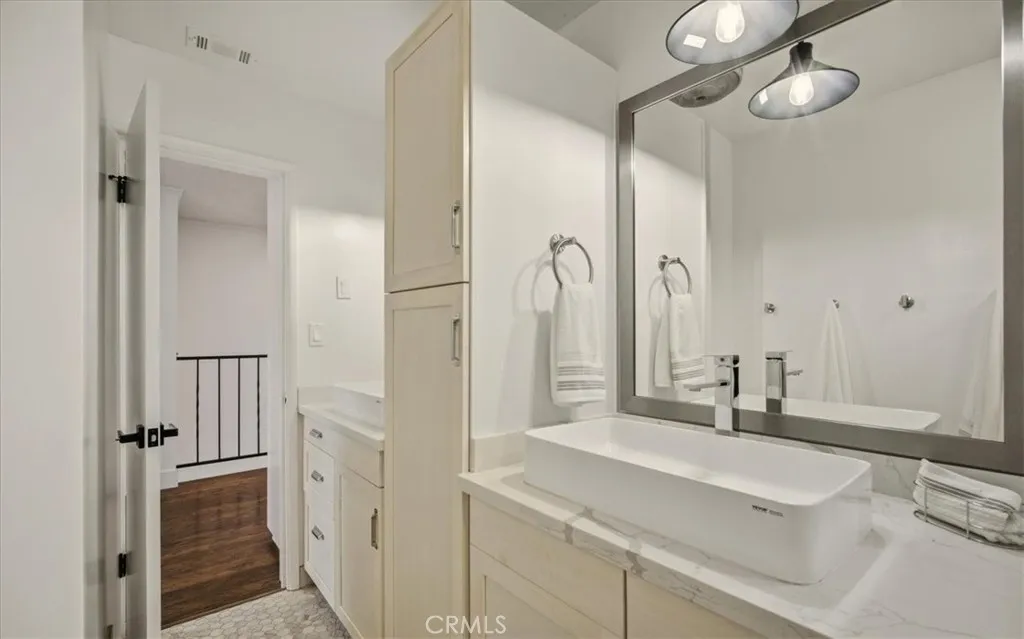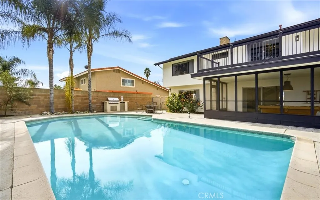 MODERN MASTERPIECE IN EAST HEMET: A MIDCENTURY SANCTUARY REIMAGINED! Step into a world where MIDCENTURY ARCHITECTURE meets 21st-century intelligence. Located on a quiet, tree-lined cul-de-sac in one of East Hemet’s most sought-after pockets, this custom-designed estate been meticulously REMODELED BY A DESIGNER as masterclass in light and flow. Beyond the grand double-door entry, an OPEN RISER STAIRCASE and LONG OPEN SIGHTLINES create an INDOOR-OUTDOOR FLOW, while massive windows bathe the open-concept layout in natural light. THE CULINARY HEART! DESIGNED BY A CHEF, the kitchen is a work of art featuring QUARTZ WATERFALL COUNTERTOPS, 42-inch birch cabinetry, and 100-YEAR-OLD RECLAIMED WOOD FLOATING SHELVES. This high-performance space is wrapped in counter-to-ceiling tile and equipped with: GOURMET POWER: A 5-burner cooktop with a pot filler and an upgraded stainless-steel hood. CUSTOM STORAGE: Full-length double pantry, two spice cabinets, and three corner Lazy Susan, two pot drawers and hidden waste bins TECH-FORWARD: Smart refrigerator and double ovens, all accented by multi-zoned custom lighting. LUXURY RETREATS! The oversized bedrooms offer a peaceful escape, with sleek laminate flooring and modern fans including a FRENCH-DOORED LIBRARY/FLEX SPACE. The bathrooms are professionally designed for a spa-like experience, featuring a GROTTO SHOWER with waterfall heads, 9-foot double vanities with vessel sinks, and an oversized tub with dedicated ceiling heaters. An Entertainer’s Outdoor Oasis! The over 9,500 sq. ft. lot is a private paradise. Poolside Living: A heated pool with a newer energy efficient heater and pump, complemented by a professional BBQ island and refrigerator. The View! Take in mountain vistas from the 25-foot balcony with integrated solar lighting. Year-Round Fun! A dedicated sunroom/rec room currently houses a pool table, perfect for indoor-outdoor hosting. Smart & Sustainable! This is a truly connected home, featuring solar panels, smart dual-zone HVAC, keyless entry, and a comprehensive Ring and ADT camera security system. For travelers, the property includes RV parking with a dedicated 220V hookup. SOUGHT-AFTER NEIGHBORHOOD AND SCHOOLS, LOW TAXES, AND NO HOA. THIS IS A ONE-OF-A-KIND SMART HOME THAT BLENDS TIMELESS DESIGN WITH MODERN LUXURY.