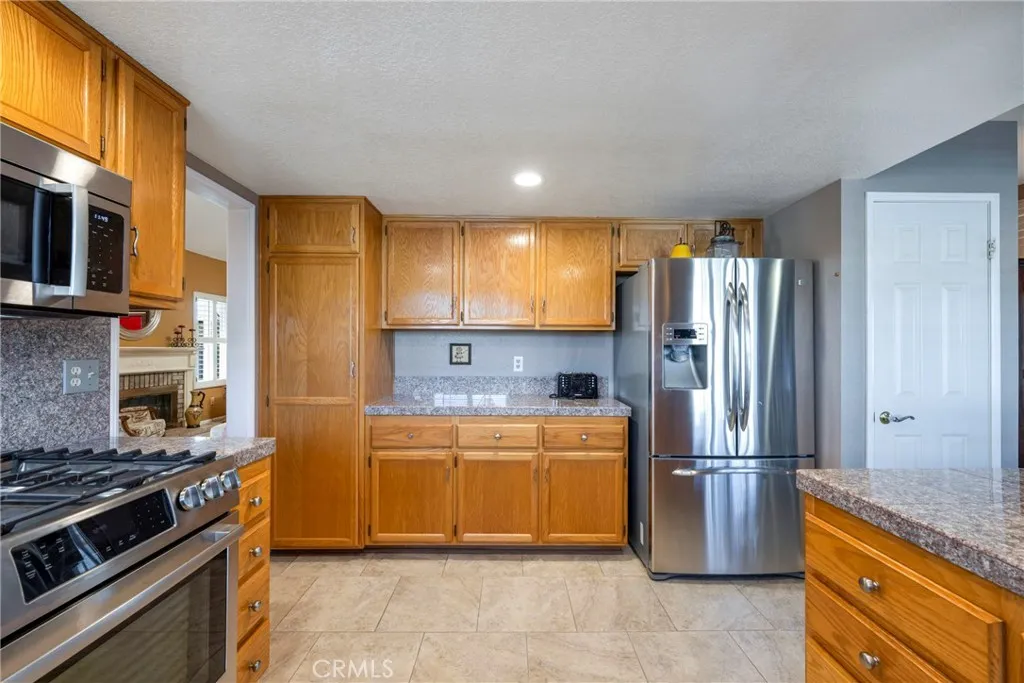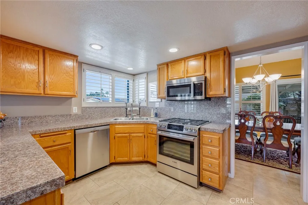 Spacious Single Story in the desirable Escondido Country Club neighborhood. Located on a corner lot whith scenic hill views from the front. Home features an open floor plan with 3 bedrooms and 2 baths, feels larger than its 1875 sq. ft. Light and bright with vaulte ceilings and a Skylight. Kitchen with granite, stainless steel appliances, pantry and gas range is open to the family room. Vaulted ceilings in the family room, living room and primary bedroom. Fireplace in the living room. Formal dining room. Primary bedroom has spacious walk-in closet. Primary bath has dual sinks and separate tub and shower. Inside Laundry room with electric or gas hook-ups and laundy sink. Private backyard with room for children to play. Home is spacious and clean. 2 Car attached garage with direct access. No HOA or CC&R
