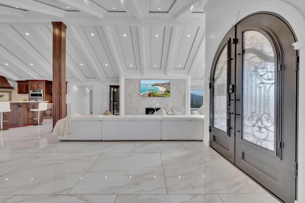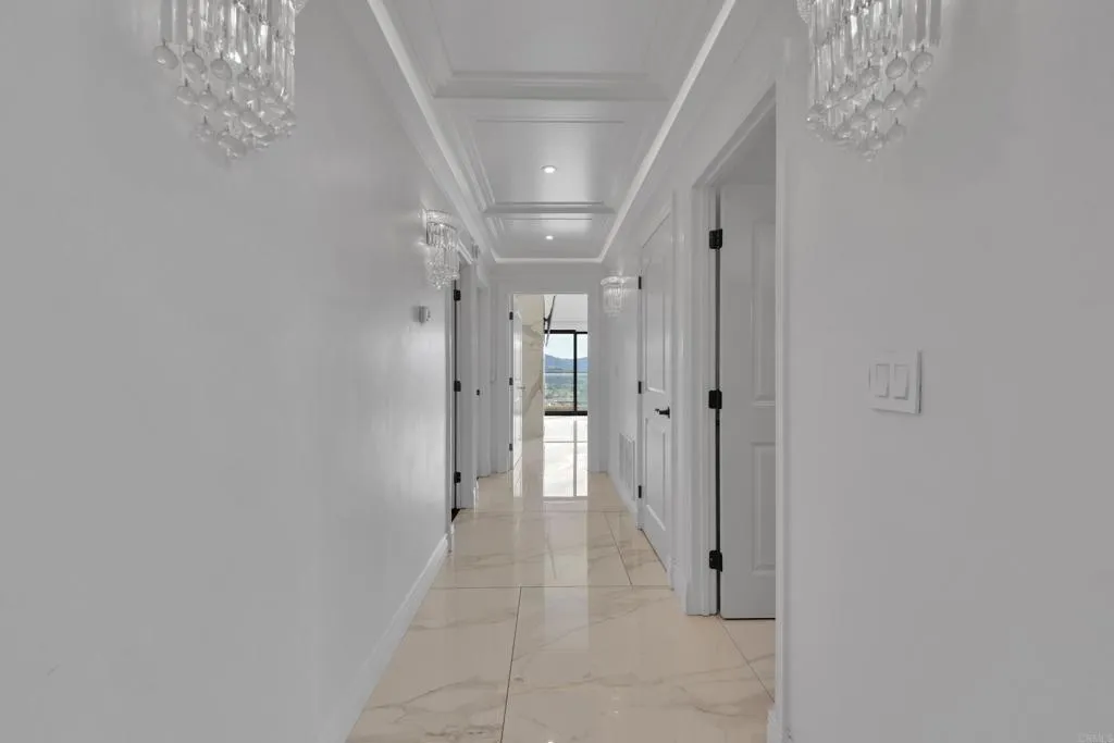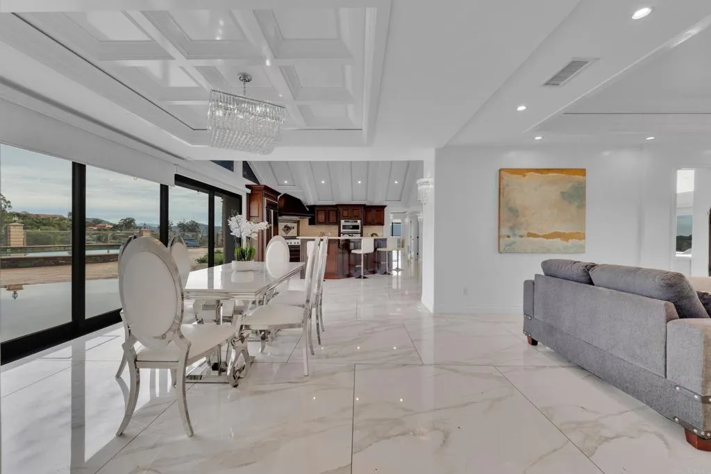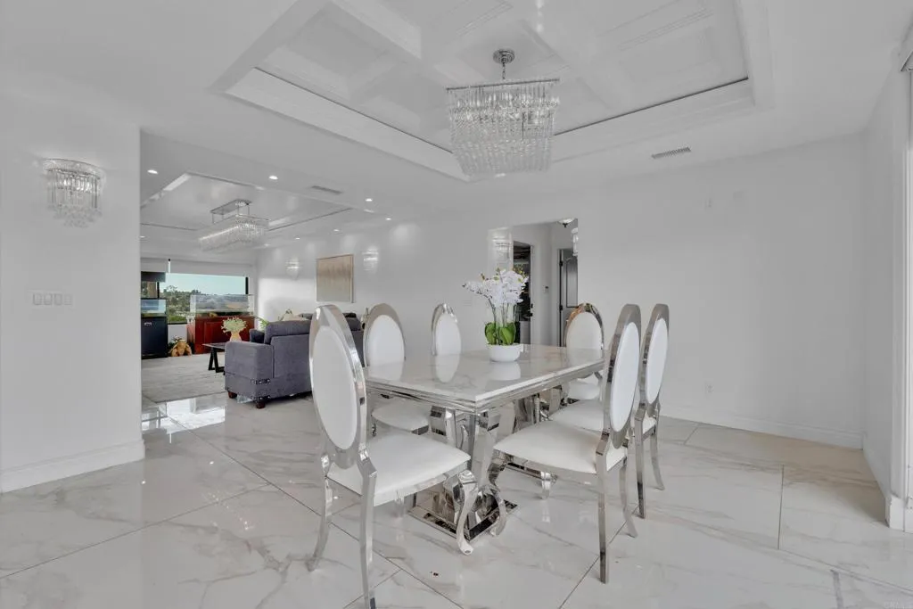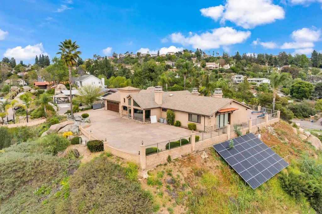 Beautiful 4-bedroom, 3.5-bath single-family home in El Cajon offering stunning panoramic views and a private backyard pool perfect for entertaining. This well-maintained residence features elegant tile flooring throughout, beautifully updated bathrooms, and striking custom architectural ceilings that create an open, dramatic living space filled with natural light. The spacious living room showcases an elegant marble slab fireplace, while the kitchen offers rich cabinetry, generous counter space, and impressive ceiling detail that enhances the home’s upscale feel. Enjoy seamless indoor-outdoor living with scenic surroundings, comfortable gathering areas, and a backyard designed for relaxation and entertaining with paid off solar.