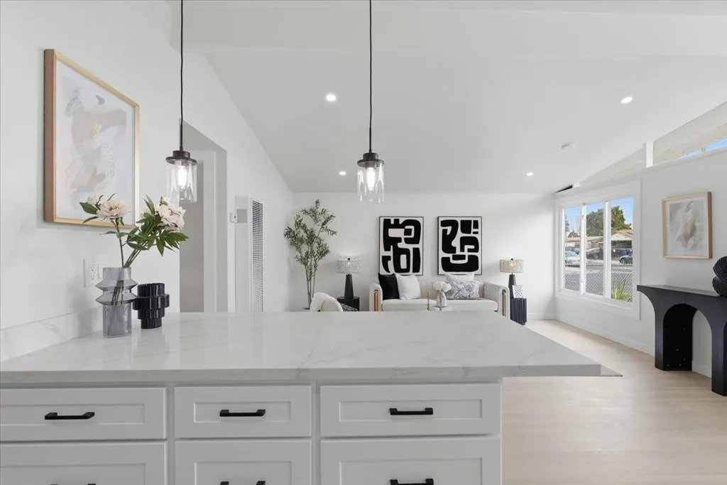 Welcome to this beautifully remodeled Hayward home featuring 3 bedrooms plus a versatile bonus room that can easily serve as a 4th bedroom. Situated on a desirable corner lot, the property offers generous outdoor space in both the front and back yards. The interior has been thoughtfully updated throughout, including a fully renovated kitchen with an inviting dining area, two brand-new bathrooms, fresh interior paint, upgraded lighting, and new luxury flooring that creates a seamless, modern look from room to room. The backyard has been newly landscaped and enhanced with a clean concrete patio and updated fencing—perfect for outdoor gatherings. The garage has also been refreshed with a new door and electric opener for added convenience. Located near major freeways, shopping, and a charming neighborhood park, this home blends comfort, style, and accessibility in one great Hayward location.