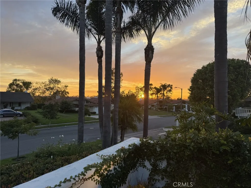 To the side of the house, there is beautiful landscaping including tall birds of paradise and gorgeous palm trees. On that side, there are 6 guest parking spaces as well.