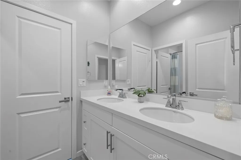 Upstairs, the spacious primary suite is a true retreat, offering a soaking tub, frameless glass shower, and a walk-in closet. The second level also includes a versatile tech/office space, two secondary bedrooms connected by a Jack & Jill bath, and an upstairs laundry room with built-in shelving.