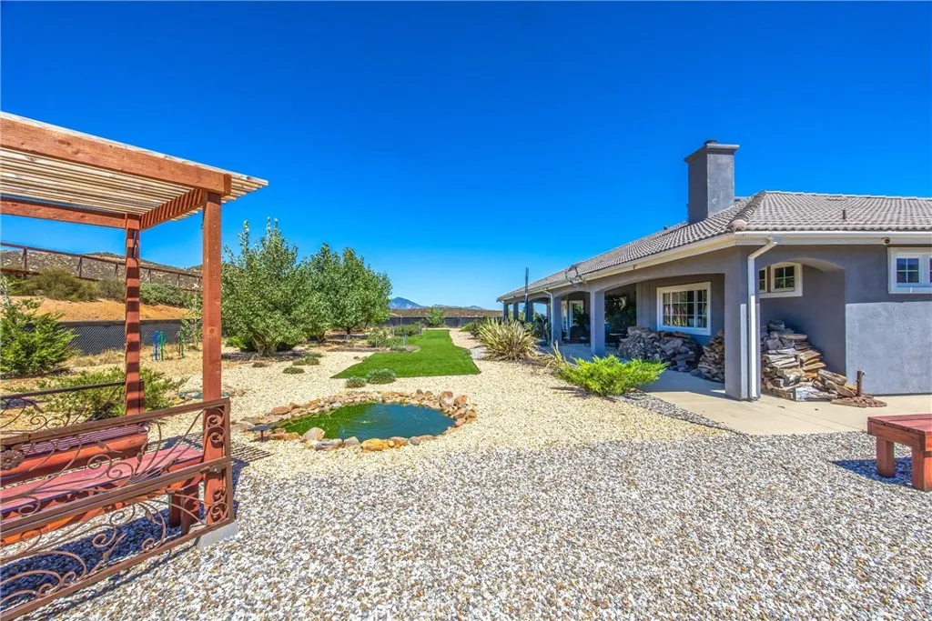 You truly can have it all! Welcome to 47298 Twin Pines Road, a bespoke executive residence set on over two-and-a-half rustic acres along the panoramic highway to Idyllwild, just minutes from the city. With more than 3,000 square feet on a single level, this one-of-a-kind retreat combines sophistication and modern luxuries with the freedom and privacy of wide-open rural living. Expansive living areas invite both relaxation and entertainment, while large windows frame the surrounding natural beauty and invite voluminous natural light. Outdoors, you’ll find room to breathe, recharge, and enjoy the serene landscape that defines this sanctuary. Every space in this home was intentionally fashioned to exude both elegance and comfort. From the moment you enter through the cathedral-ceiling foyer, you’re greeted with thoughtful design and elevated custom craftsmanship. A cozy living room highlighted by an alluring contemporary fireplace flows effortlessly into the entertainer’s kitchen, featuring high-end stainless steel appliances, a spacious island with breakfast bar, and an inviting dining nook. A separate formal dining room with fireplace and an adjoining conversation den create ideal spaces for gatherings. This home offers 5 large bedrooms and 4 full bathrooms, including two expansive private primary suites with oversized walk-in closets and spa-like baths. The main primary also features an intimate retreat, fireplace, dual sinks, vanity, soaking tub, and a walk-in closet to die for. In different wings, three additional bedrooms and two full baths ensure comfort and privacy for family or guests. Outside, panoramic countryside views highlight an entertainer’s backyard with multiple social stations and a full-length covered patio with recessed lighting—perfect for both intimate evenings and larger gatherings. A finished three-car garage with ample storage and a private driveway with reception pad offer plenty of room for vehicles, toys, and entertainment. The surrounding landscape embodies the charm of rural living, framed by ranches, wildlife, and sweeping hillsides. Whether you’re seeking a refined getaway or a primary residence that feels like an escape, this distinctive home delivers the perfect balance of elegance and tranquility. Don’t miss the chance to experience executive living against the backdrop of wide-open skies.