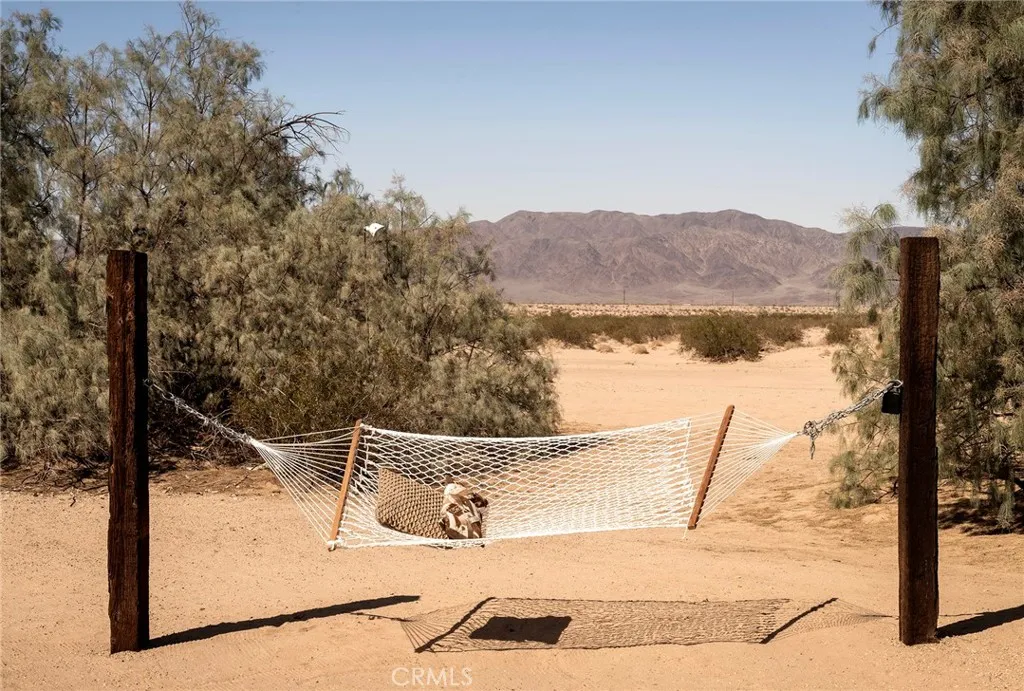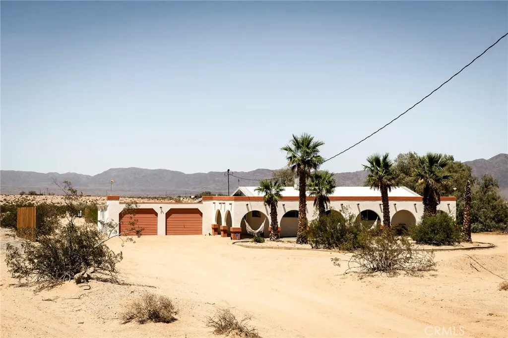 Los Arcos is a distinctive desert retreat set on 5 private acres in Wonder Valley, one of the High Desert’s most peaceful communities, known for expansive views and exceptionally dark night skies. Inspired by colonial Spanish ranch architecture with a playful mid-century influence, the property offers privacy, character, and versatility just 15 minutes from the eastern entrance of Joshua Tree National Park and downtown Twentynine Palms. SELLER JUST INSTALLED A NEW ROOF. Currently operating as a successful short-term rental, the home is offered fully furnished and turnkey. The interior features a spacious layout designed for both comfort and entertaining, with multiple living areas that create a relaxed and functional flow. The updated kitchen blends vintage charm with modern convenience, while refreshed bathrooms complement the home’s architectural style. Outdoor living is a standout feature of the property. Amenities include a spa, cowboy tub, outdoor shower, firepit, hammocks, and multiple shaded seating areas framed by signature arched details. The original homestead cabin adds historic character and visual appeal, while the attached 1,056 sq ft garage provides ample storage and flexible use potential. Situated on a private well, the property supports efficient desert living without water bills. Whether used as a primary residence, second home, or income-producing short-term rental, Los Arcos presents a rare opportunity to own a well-established desert property with space, privacy, and strong rental appeal.