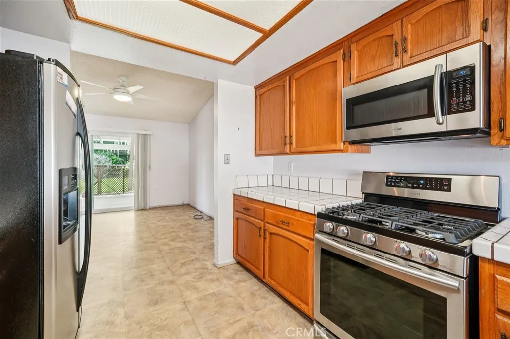 The open and inviting floor plan is complemented by a durable tile roof, dual-pane windows, and a light-filled kitchen featuring a garden window overlooking the courtyard. Step outside to enjoy a private courtyard with a covered patio, plus an additional large covered patio ideal for entertaining, complete with a gas stub-out for a barbecue area.