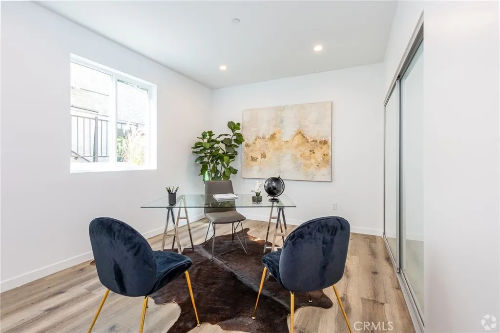 Stunning modern 3-bedroom, 3.5-bath tri-level townhouse offering over 2,550 sqft of living space with a 2-car attached garage. This exceptional unit features a private rooftop deck with breathtaking views. The first level includes the garage and a bedroom with its own en-suite bath. The second level showcases an open-concept living, dining, and kitchen area with European-style cabinetry, quartz countertops, full tile backsplash, and stainless-steel appliances. All remaining bedrooms are on the third level, including the spacious primary suite with a walk-in closet and a luxurious bathroom featuring designer tile, a glass-enclosed shower, and dual vanity. Ideally located near the 101 and 405 freeways, Ventura Blvd, Sherman Oaks Recreation Park, Westfield Fashion Square, dining, shopping, and more. Boutique complex with only 3 total units.