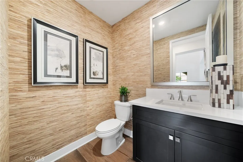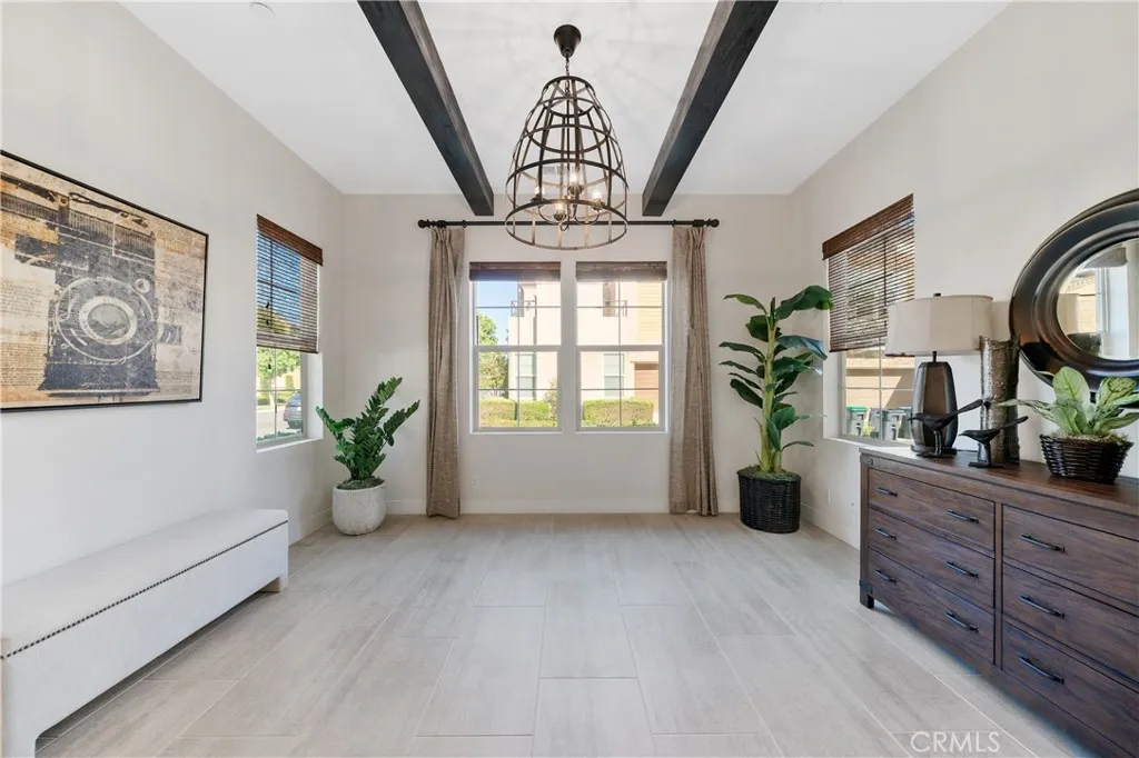Don't miss this rare opportunity to own a beautiful former model home in 24-hour guard gated resort community of Altair. This model home is a detached single family house and the land use is condo. It has luxury upgrades throughout and is close to brand new condition. This must-see house is an ideal one that everyone loves. It comes with smart home features electric roller shields. First floor includes a convenient bedroom and a full bathroom. Second floor loft has a build-in bar comes with 2 wine coolers and that area can be converted to a 2nd family room. office or media zone with ceiling speakers installed. Outdoor retreats with covered California room with fireplace. Backyard has water feature design with three fountains and a sitting area with an unique modern design ground fire pit. Property is walking distance to clubhouse and is located just across street from top rated Portola high school.