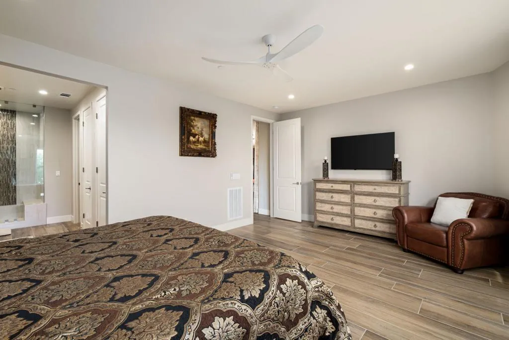 Welcome to this beautifully upgraded Connect floorplan located in the highly desirable 55+ community of Trilogy Polo Club. This thoughtfully designed single-story home offers 3 bedrooms plus a versatile den, ideal for additional guests, a home office, hobby space, or flexible living. The open-concept kitchen is a true standout, featuring GE Cafe Series stainless steel appliances, including a gas rangetop. The space is beautifully finished with quartz countertops, full backsplash, an oversized island, and upgraded cabinetry with soft-close drawers.The primary suite serves as a relaxing retreat with a spa-style shower, upgraded bath finishes, and a bay window that fills the space with natural light. Additional interior highlights include owned solar, reverse osmosis (soft water to the entire home), upgraded tile plank flooring, LED recessed lighting, under-cabinet kitchen lighting, contemporary interior doors and trim, mini split A/C unit and cabinetry in the 2-car garage, and a multi-slide glass door that seamlessly blends indoor and outdoor living.Step outside to enjoy the extended backyard with mountain views, perfect for entertaining, relaxing, or creating your own outdoor oasis. Two drop down electronic shades are built in to the outdoor space for additional sun protection or to create an outdoor living space.Residents of Trilogy Polo Club enjoy a highly social, easy-to-plug-into lifestyle with scenic walking paths and access to resort-style amenities including the clubhouse, fitness center, resort and lap pools, pickleball and tennis courts, golf simulator, social clubs, and the on-site public restaurant, June Hill's Table. Conveniently located approximately 7 minutes from shopping, dining, and grocery stores, this home offers both connection and everyday convenience.This home offers the perfect blend of modern design, thoughtful builder upgrades, and resort-style living in one of the desert's most sought-after active adult communities.