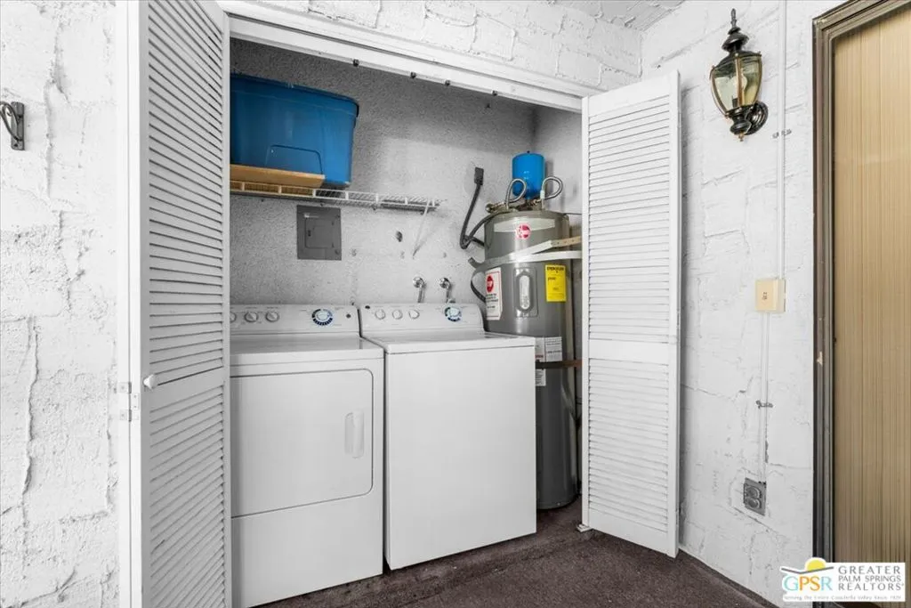 Welcome to 5125 Waverly Drive, Unit B2. This condo on FEE land is a bright and inviting 2-bedroom, 2-bath residence nestled in the sought-after Palm Canyon Villas community. The open-concept layout features an airy kitchen that flows easily into the living and dining areas, all illuminated by abundant natural light. The spacious primary suite provides privacy and comfort, while the second bedroom is ideal for guests, a home office, or rental flexibility. Step outside to a generous covered balcony that showcases beautiful mountain views and overlooks the meticulously maintained pool and grounds. A dedicated laundry closet with washer and dryer is discreetly situated on the balcony for added convenience. Palm Canyon Villas is a beautiful and quiet community with lush landscaping, sparkling pool and spa with exceptional mountain views, and tennis courts. Located just minutes from downtown Palm Springs shopping, restaurants, and casino fun and walking distance to favorite shops including Trader Joe's Starbucks, Vons, and Target. Quick and easy freeway access to the east valleys premier shopping and dining destinations this property offers exceptional convenience in a tranquil setting. Whether you're seeking a full-time residence, a seasonal escape, or a smart investment opportunity, this quiet centrally located home presents a versatile and appealing option in one of Palm Springs' most accessible neighborhoods.