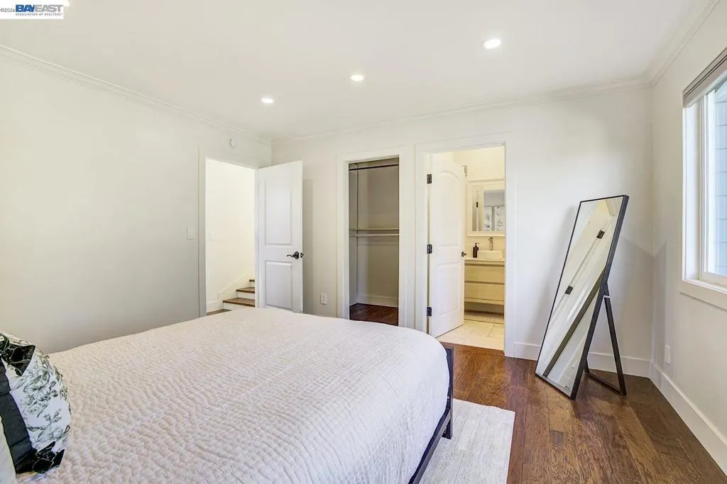 Elegant and Timeless Living with Flexible Spaces and an Elevated Setting. Beautiful North East–facing Craftsman home in Castro Valley offering a bright, open floor plan and flexible living spaces. The main level features four bedrooms and three-and-a-half bathrooms, complemented by a spacious kitchen with quartzite countertops, a gas range, stainless steel appliances, engineered wood flooring, recessed lighting, and updated bathrooms. Natural light fills the living areas, creating a comfortable and welcoming atmosphere. The lower level offers a private living area with a kitchenette and a bonus room, ideal for extended family or guests. Outdoor living is enhanced by a backyard with a Trex deck and a fully equipped outdoor kitchen, perfect for entertaining or relaxing at home. An elevated setting provides open hillside views, enhancing privacy, light, and a sense of space. Up to 400 square feet of additional bonus living space, offering extra flexibility for living, work or entertainment. Conveniently located within walking distance to an elementary school, and close to downtown Castro Valley, Lake Chabot Regional Park, BART, and major commuter routes including I-580 and I-880.