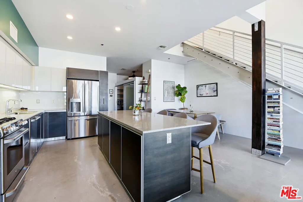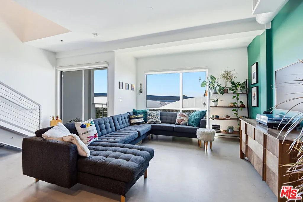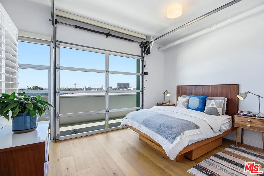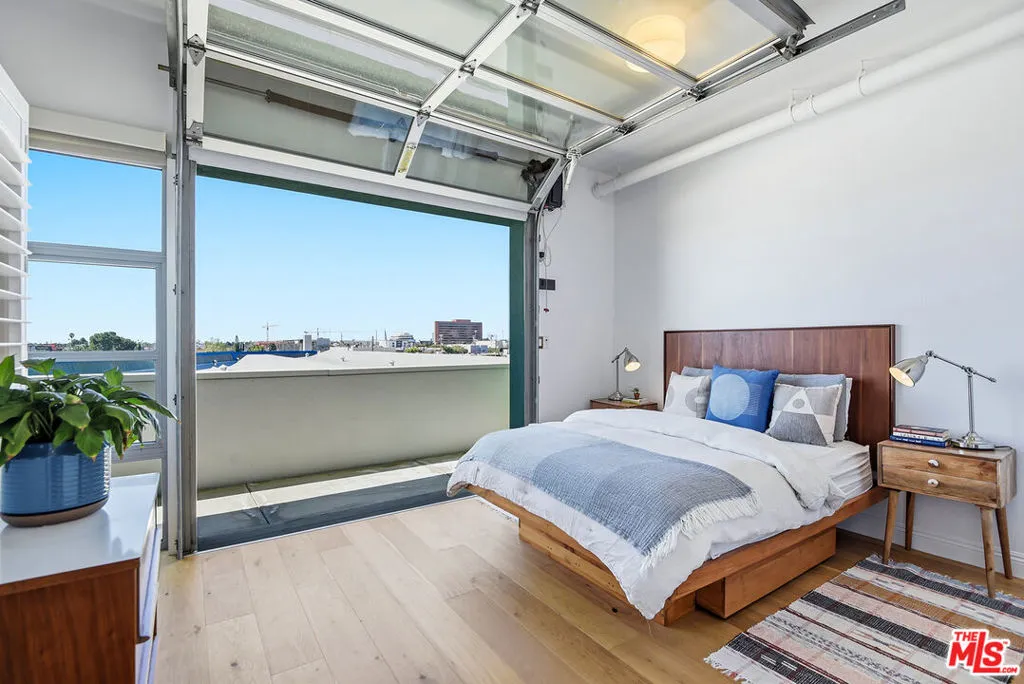 Located in the coveted T-Lofts, this top-floor, quiet urban loft offers open, light-filled living defined by high ceilings, an expansive open floor plan, and a modern industrial aesthetic. Designed for both style and function, the home provides exceptional privacy with no unit above, excellent sound insulation, and west-facing exposure that captures warm sunset light. The main level showcases classic loft elements with polished concrete floors, soaring ceilings, and oversized windows that fill the space with natural light and a refreshing ocean breeze. The open-concept layout seamlessly connects the living, dining, and kitchen areas, well suited for entertaining, working from home, or everyday living. The kitchen features Italian cabinetry, Caesar-stone countertops, and stainless steel appliances, including a brand-new refrigerator and microwave/air fryer. The interior was freshly painted in 2024 for a move-in-ready presentation. Upstairs are two bedrooms, including a spacious primary suite that continues the loft-inspired design with newly installed flooring and a custom Container Store Elfa walk-in closet system. A distinctive industrial-style door opens directly from the primary bedroom, offering a unique indoor-outdoor connection and the opportunity to enjoy nighttime sky views from the bedroom. The renovated primary bathroom features double sinks, an oversized shower, a separate soaking tub, and Kohler fixtures.A bonus space on the main level provides additional flexibility and can be used as a home office, creative studio, or reading nook ideal for today's work-from-home lifestyle. Two private outdoor areas further enhance indoor-outdoor living: a west-facing balcony on the main level and an upper deck with a roll-up door, ideal for entertaining or enjoying sunset views .T-Lofts amenities include a landscaped courtyard, BBQ area, jacuzzi, fitness center conveniently located on the same level as the unit, secure entry, EV charging stations, bike racks, and two tandem parking spaces. Guest parking is available with approximately 35 spaces for residents and visitors. Ideally situated in a highly walkable location near Sawtelle's dining and shopping, with convenient access to the Expo Line, Santa Monica, Brentwood, Century City, and Beverly Hills, this home offers a well-balanced blend of design, comfort, and urban convenience.