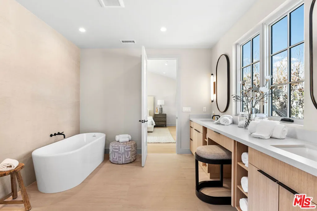 A newly built traditional home by Smart Builders, known for thoughtful craftsmanship and custom design, set on a charming corner lot along tree-lined streets in the heart of Mar Vista and within the highly regarded Mar Vista school system. Inside, the first floor welcomes you with a formal dining room featuring Fleetwood sliding doors found throughout the home and an elegant living room highlighted by custom moulding and a stunning marble slab fireplace crafted from Antolini Breccia Capraia marble.The gourmet kitchen is a true showpiece, featuring matching marble countertops, rich green cabinetry, and a white oak island, complemented by a full suite of Thermador appliances including range, refrigerator and freezer, microwave, and dishwasher, while the main level also includes a beautifully appointed powder room. A generously sized downstairs secondary primary suite larger than a typical bedroom offers exceptional flexibility for guests or multigenerational living.Upstairs, the expansive primary suite serves as a private retreat, featuring a large walk-in closet, a spacious spa-like bathroom, and a private balcony off the bedroom. Three additional upstairs suites provide ample space and privacy, each with its own well-appointed bathroom, along with a conveniently located second-floor laundry room. Thoughtfully designed throughout, this exceptional residence seamlessly blends classic traditional elegance with modern luxury in one of Mar Vista's most desirable neighborhoods.