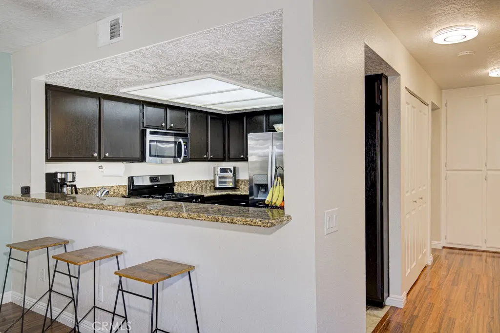 Location, location, location! This ground-floor corner unit offers exceptional privacy and a tranquil setting next to a peaceful greenbelt. Step outside to your private patio and enjoy the soothing views of open green space - perfect for relaxing or entertaining. Inside, the kitchen features granite countertops, a large breakfast bar that connects seamlessly to the dining area, and a new dishwasher. The inviting living room includes a brick fireplace and laminate flooring throughout for easy maintenance. Additional highlights include 2 bedrooms, 1.5 bathrooms, dual-pane windows, an inside washer and dryer, and a ceiling fan in the dining area. Parking includes an assigned covered carport space with storage and an uncovered parking space. This well-maintained home was repiped about five years ago and features a newer water heater. Enjoy resort-style amenities including a community pool and spa, all in a highly desirable Lake Forest location close to shopping, dining, and local parks.