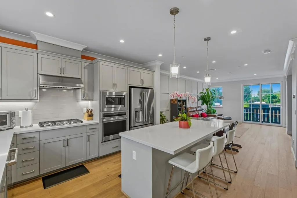 Don't be fooled by the address,triple paned windows ensure this home is quiet! And the views of the sunsets over the mountains from your private deck might just be the best in all of Mountain View. Looking for luxury and location without sacrifice? Don't miss this one. This nearly new, turnkey townhome combines modern design and an exceptional walkable lifestyle. Built in 2020, this 3-bedroom, 3.5-bath home delivers light-filled, open-concept living. Main level features a spacious living/dining area that opens to a balcony w/gas BBQ. Chef's kitchen includes quartz countertops, stainless steel appliances, premium cabinetry, and an oversized island. Every bedroom has it's own full bath, offering privacy for guests or multi-generational living. Ground-level bedroom suite provides flexibility as a home office, while upstairs primary suite serves as a peaceful retreat with a walk-in closet. A third en-suite bedroom, convenient laundry with full-size machines, and a finished attached two-car garage with EV charger complete the Close to Downtown dining, shopping,Starbucks, Rengstorff Park, major tech campuses, and outstanding schools, including highly coveted Los Altos High School! Modern, comfortable, and exceptionally well located--this home delivers luxury living without compromise.