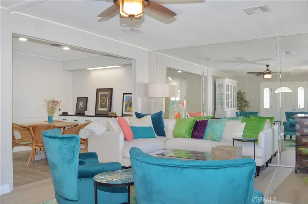 Welcome Home to 10203 Overland Trail in Cherry Valley's Popular 55+ Golf Community of Highland Springs Village! If you're ready to enjoy an active 55+ lifestyle in the beautiful Highland Springs Village Community where you OWN your own LAND, then this inviting home rehabbed in 2025 with abundant space inside & out is perfect for you! What's special about this home aside from the rehab? Due to the spacious corner lot and the positioning of the home, you aren't lined up in a row of mobiles like so many others in this community are - it feels much more like a "traditional home." As you enter the spacious living room from the expansive screened porch (an awesome spot to enjoy views of the flowering front yard and local hills), you’ll love the attractive flooring & rock fireplace accentuated by the designer-perfect custom decor. The gorgeous kitchen with white Shaker-style cabinetry, quartz countertops, a breakfast bar, stainless steel & black appliances, an included fridge which matches the countertops, & recessed lighting is open to both the dining room and family room for a great flow. A window-filled bonus room right off of the family room offers even more living space to enjoy (the wicker sofa & chairs are included). The main bedroom suite offers a glass barn door entry, 3 closets (wow!), & an en suite bath with easy-access shower. The 2nd bedroom also has its own bath with a newer vanity & a custom, tiled shower. The laundry room comes with washer & dryer included, a handy sink, & ample storage. Nearly all of the windows have been replaced with energy-efficient dual-paned glass. Yes, there’s newer central heat & air, too. A handy storage shed is located under the covered carport. Outside, there are inviting pathways from which to enjoy the views and your flower-filled yard plus two more small, covered patios. Highland Springs Village offers many amenities including: golf on the private golf course, a sparkling pool, spa, tennis and pickleball courts, lakes, & a clubhouse with lots of activities. Low HOA dues of $175/month. Check out the virtual tours, then call or text your favorite agent today to make it yours! You deserve this!