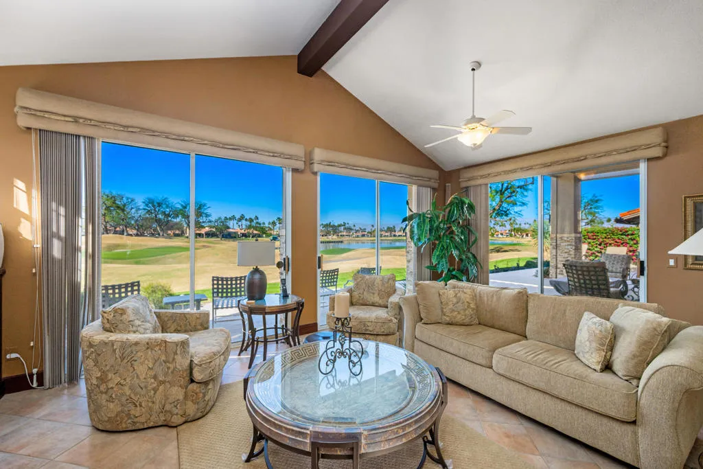 Nestled alongside the 7th green of the legendary TPC Stadium Course at PGA WEST, this home is a masterpiece of luxury and style. This stunning 3-bedroom, 3.5-bathroom, 3,450 sq. ft. home offers a rare blend of privacy, elegance, and breathtaking surroundings. Imagine viewing the serene lake views and the rugged beauty of the Santa Rosa Mountains, with every sunset painting a masterpiece just for you. The outdoor living space is an entertainer's paradise--picture yourself hosting unforgettable gatherings around the firepit or at the custom sit-down BBQ island, under the comfort of a large covered patio with overhead heaters and fans. It's the ultimate oasis for enjoying desert evenings with friends and family. Inside, the home's thoughtful updates and spacious layout elevate every moment. The fully remodeled kitchen is a chef's dream, while the luxurious primary bath, complete with a dual-head shower, offers a spa-like retreat. The redesigned sit-down bar is perfect for mixing cocktails and sharing stories, and the powder room adds a touch of sophistication. There are also 3 fireplaces that add to the comfortable feel of this home. A large courtyard provides even more options for outdoor relaxation or a perfect area for your canine friends. There is also a large 2.5 car garage with plenty of room for 2 cars and a cart. Whether you're savoring the iconic golf course views, unwinding in the comfort of your private retreat, or friends and family, this home embodies the best of desert living. Luxury, comfort, and an unbeatable location. Offered furnished