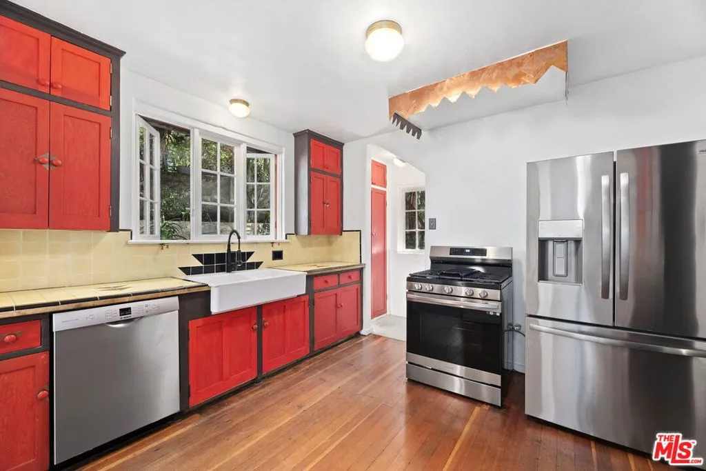 Unique architectural Gem in Echo Park/Elysian Park, this home, designed by architect Robert Stacy-Judd, who had just designed the 1925 Aztec Hotel in Monrovia to international acclaim, was regularly privately occupied by Award Winner set designers. Features in Architectural Digest, https://www.architecturaldigest.com/story/an-esteemed-set-designer-shares-his-fantasy-house-in-la, this home offers the utmost authentic luxurious and epic experience. In 1931, Judd created an entire Hopi-esque Bungalow Village, replete with thick Adobe walls, deep set windows, vigas, even Hopi hand-hewn beams, primitive-style tile rain gutters and ladders to enjoy the then-open pre-freeway peaceful views of the rural cityscape. This architectural jewel features on 3 stories 4 bedrooms, 2 bath all in the Mayan Revival 1920s Adobe style. The bungalow features multiple rooftop gardens and balconies with views of the ocean and the iconic Hollywood sign as well as endless architectural features and upgrades just moments from Hollywood and downtown. Relax in your private creative retreat with beautiful light, expansive views, indoor and outdoor fireplaces and two car garage.