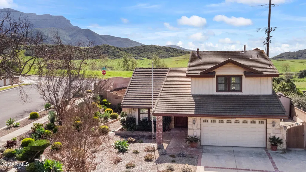 Welcome to this exceptional View/RV/Pool/Spa home in the heart of Newbury Park! Offering 3 bedrooms, 2.5 bathrooms, and approximately 1,839 square feet of living space, this home is designed for both comfort and entertaining. The inviting living and dining rooms flow seamlessly into an expanded family room featuring a charming bay window and cozy fireplace--perfect for relaxing evenings at home. The kitchen is beautifully appointed with granite countertops, stainless steel appliances, and a sun-filled bay window that brings in abundant natural light. Upstairs, the spacious primary suite includes an en suite bathroom with a tiled shower, bench seating, and an updated vanity. Two secondary bedrooms provide flexibility for family, guests, or a home office--one featuring a private balcony with sweeping, unobstructed views of Mount Boney. Additional highlights include hall bathroom with tiled shower/tub and granite vanity, indoor laundry, hardwood flooring, dual-paned windows, tankless water heater, upgraded electrical panel and solar panels for enhanced energy efficiency. Situated on a desirable corner lot with drought-tolerant landscaping, the private backyard is an entertainer's dream--complete with a sparkling pool, spa, and substantial RV access. Conveniently located near schools, parks, and scenic hiking trails, this home offers the perfect blend of lifestyle, comfort, and location. This is one you won't want to miss!