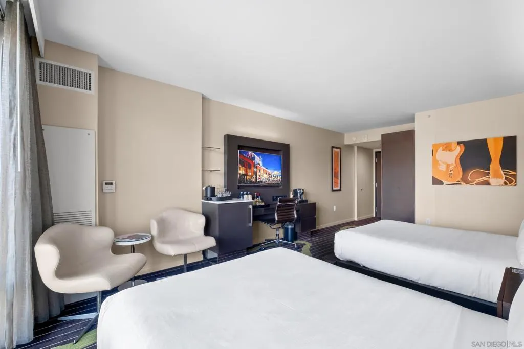 Great opportunity to own a rare upper floor queen studio that looks out over the pool/entertainment deck with views of the downtown skyline! Owners are considered Rock Royalty and have their own concierge services, private owner lounge, and access to all the Best Hard Rock has to Offer. Located immediately adjacent to Petco Park and the Gaslamp Quarter with some of the hottest bars and restaurants.