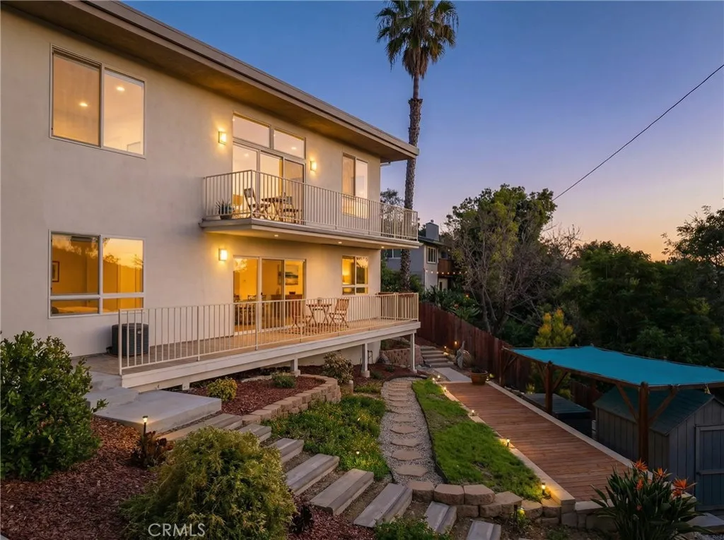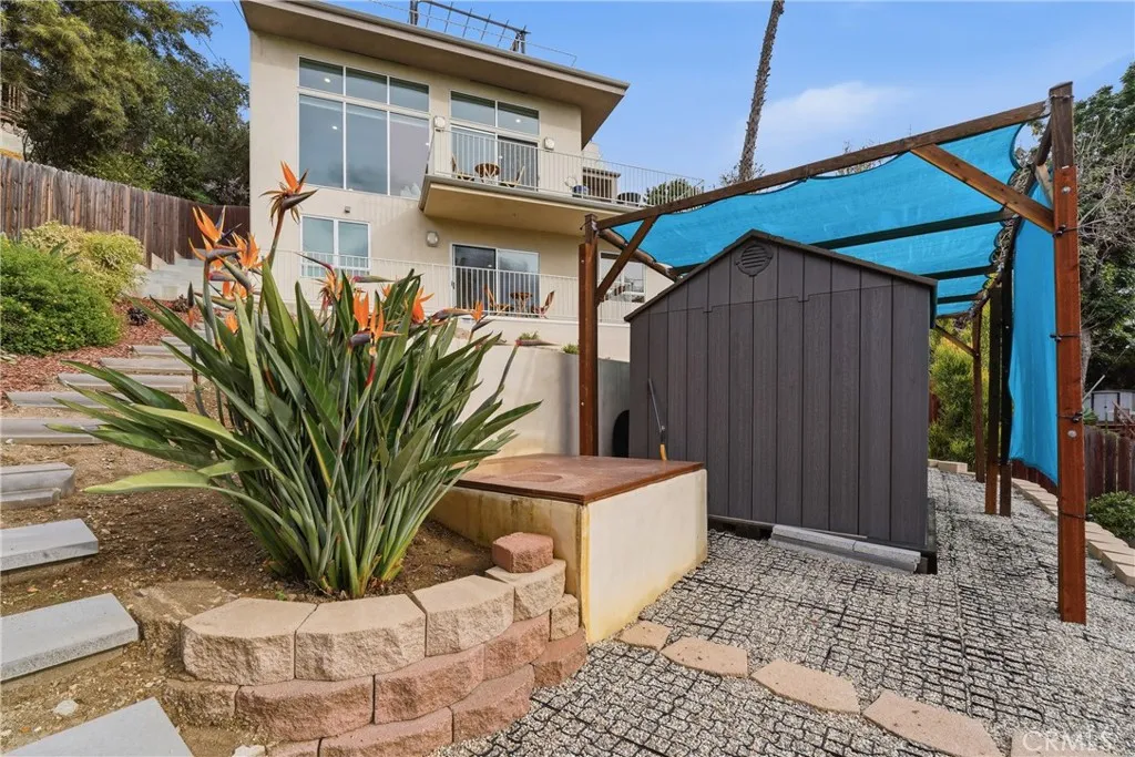 Step outside to enjoy incredible indoor outdoor flow with walk out patios and an impressive 721 sq. ft. entertainer’s terrace, perfect for hosting gatherings while soaking in the views. Multiple balconies provide additional vantage points, and the beautifully landscaped backyard offers peaceful outdoor enjoyment along with convenient storage sheds and a water collection reservoir for added sustainability and smart water use.