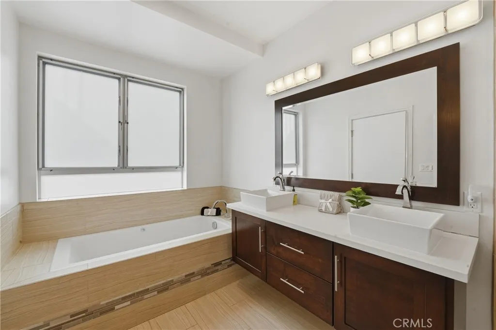 The primary suite is a private retreat featuring a walk-in closet and a spa-like bathroom complete with a jet tub, gorgeous shower, and elegant finishes. Several rooms offer high ceilings, enhancing the sense of space and light throughout the home.