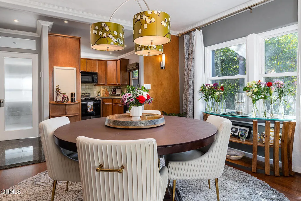 Don't miss seeing this classic Spanish style duplex, gracefully situated on the corner of two peaceful, tree lined streets in the highly desirable residential neighborhood of North Monrovia. Currently tenant occupied, however, this is a duplex you can live in, should you wish to - perfect for multi-generational families. Rich in architectural charm and thoughtful design, the property was originally conceived as a duplex and continues to offer flexibility, with the potential to be converted into a single family residence with minimal modification. The corner orientation provides excellent natural light, added privacy, and a true neighborhood presence. The Oaks Avenue unit is a refined one bedroom, one and one half bath residence designed for both comfortable living and entertaining. Restored white oak hardwood floors extend throughout the open floor plan, creating warmth and continuity. The spacious living room features an elegant coved ceiling and a custom built in media center. The dining room serves as a central gathering space, ideal for family meals or hosting guests. The kitchen is beautifully appointed with granite countertops, custom cabinetry, and modern appliances. This side of the property also includes a long gated driveway, a covered porch with old world architectural influence, and a private garage. Facing Acacia Avenue, the second residence offers a generous two bedroom, two bath layout with excellent separation of space. Dual entrances are positioned at either end of a covered porch with a distinctive turret, adding classic Spanish character. The open living area flows into the kitchen, which features granite countertops, abundant cabinetry, and ceramic tile flooring. White oak floors run throughout most of the home. Recent improvements include fresh interior paint, updated plumbing through repiping, newer kitchen appliances, a washer and dryer, a newer thermostat, and a newer water heater. A gated side yard provides access to a garage, laundry room, and a private covered patio. Both residences benefit from new electrical inside and out, central heating and air conditioning, crown molding, refined fixtures and lighting, an expansive California basement, and meticulously landscaped grounds. Located near Old Town Monrovia, the property enjoys close proximity to dining, shopping, the library, theater, and local markets, offering timeless Spanish character in one of Monrovia's most sought after neighborhoods. Come visit and see for yourself!