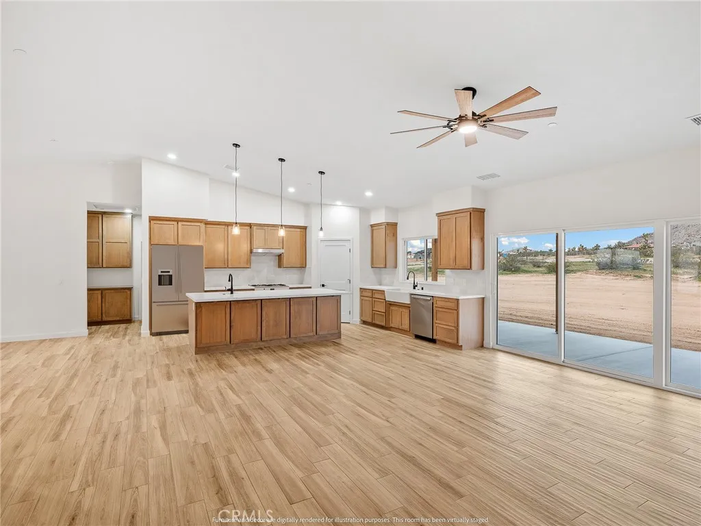 Nestled on 2.5 acres of pristine desert landscape, this newly constructed home blends modern comfort with wide-open Western serenity. Offering 4 spacious bedrooms and 2-1/2 beautifully appointed bathrooms, this 2,176-sq-ft residence is designed for both relaxation and functionality. Step inside to an airy, open-concept living space highlighted by vaulted ceilings and a cozy fireplace that anchors the great room. The gourmet kitchen is a true centerpiece, featuring a large island, upgraded stainless steel appliances, and beautiful alder hardwood stained cabinetry —perfect for cooking, gathering, and entertaining. Each bedroom offers ample space and walk-in closets, while the primary suite provides a peaceful retreat with views that stretch across the desert horizon. Large windows throughout the home frame sweeping vistas of the surrounding landscape, with the property sitting close to the base of the mountains for a dramatic and tranquil backdrop. With plenty of room to roam, this property is also ideal for equestrian enthusiasts—designated as horse property, it offers the freedom and space to create your own desert ranch lifestyle. A rare blend of new construction, natural beauty, and wide-open potential, this home captures the essence of desert living at its finest.