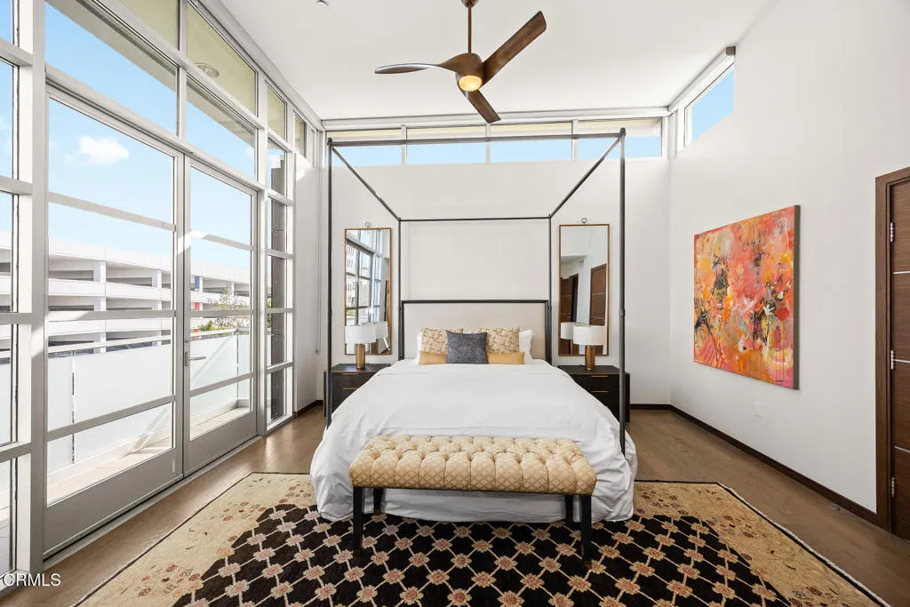 Inspired by Bauhaus architecture, Hudson Terrace is a modern luxury penthouse built in 2009 in Pasadena's vibrant South Lake Avenue District. Ideally positioned across from the Pasarroyo Business Complex and 1 block from dining, shopping, and fitness--including Trader Joe's, Erewhon, Macy's, and LA Fitness--this front‑facing penthouse offers exceptional urban convenience in one of the city's most desirable neighborhoods. The exterior features a Trespa Meteon rain shield system, ivory brick and stucco detailing, sandblasted glass balcony railings, and expansive floor‑to‑ceiling windows that fill the home with natural light. Spanning three levels with no common walls, the residence provides loft‑like living experience. The dramatic living room showcases resurfaced hardwood floors, a precast stone corner fireplace, French Deco capiz shell sconces, custom Hunter Douglas roller blinds, and floor‑to‑ceiling dual‑paned glass doors opening to a balcony overlooking oak‑lined Hudson Ave. Updated electrical circuitry and Lutron Caseta dimmer‑controlled recessed lighting enhance the modern ambiance. An elegant guest bath with marble counters and intricate tilework completes the main level. The gourmet kitchen features sleek Italian‑designed cabinetry, honed black granite countertops, a Bertazzoni gas range and hood, Bosch stainless steel appliances, filtered water at both sink & refrigerator, a walk‑in storage room, utility closet, and a dedicated balcony with stainless FireCraft smoker grill. The primary suite offers vaulted ceilings, remote‑controlled roller shades, a craftsman wood ceiling fan, a gas fireplace, and a custom Dall'Agnese walk‑in closet. The spa bath includes a 6 jet soaking tub, floor‑to‑ceiling glass shower, double Duravit sinks with Kohler polished nickel fixtures, and imported stone. A second bedroom with a mirrored wall functions as a guest room, gym, or office, with an adjacent bath featuring a spacious travertine and mosaic steam shower. A private rooftop terrace crowns the penthouse, offering sweeping city & mountain views. Additional highlights include 4 balconies, 2 side‑by‑side parking spaces near the elevator and storage room. Upgrades: Nest climate control, Lutron Caseta lighting, Hunter Douglas blinds, Restoration Hardware lighting, Bosch refrigerator, LG ThinQ washer/dryer. This pristine residence is moments from Pasadena's iconic: Caltech, ArtCenter, Langham, Huntington Library, Norton Simon, Old Town, Playhouse & Rose Bowl.