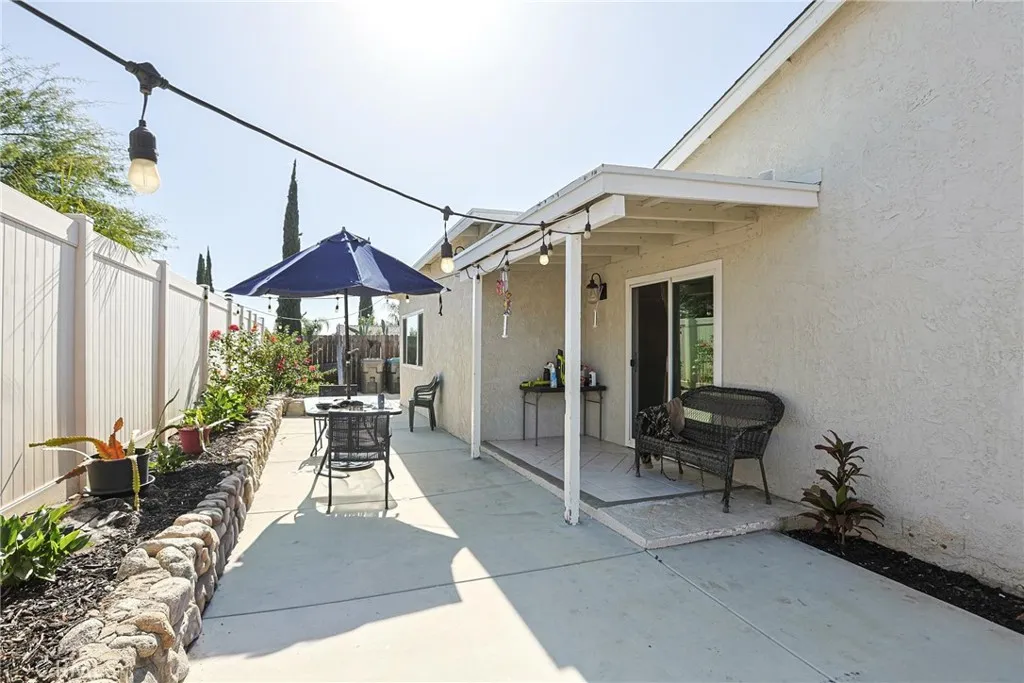 Welcome to 24675 Singer St, Moreno Valley! This beautifully updated single-story home offers comfort, efficiency, and outdoor enjoyment in a well-established neighborhood. Step inside to a bright and inviting open-concept living space featuring recessed lighting, neutral tones, and modern flooring throughout. The spacious living room flows effortlessly into the dining area, creating an ideal layout for both everyday living and entertaining. The upgraded kitchen shines with white shaker cabinetry, quartz countertops, stainless steel appliances, and a stylish tile backsplash—perfect for home chefs and casual gatherings alike. Ample cabinet space and a functional layout make this kitchen as practical as it is attractive. The home features comfortable bedrooms with generous natural light and an updated feel throughout. Energy efficiency is a major plus with solar panels already installed, helping reduce monthly utility costs, along with a central A/C system approximately 4 years old for year-round comfort. Step outside to your own private backyard oasis complete with a sparkling swimming pool—ideal for summer entertaining, relaxing weekends, or hosting family and friends. Low-maintenance landscaping enhances both curb appeal and ease of ownership. Additional highlights include a detached two-car garage, a wide driveway, and excellent curb appeal. Conveniently located near schools, parks, shopping, dining, and freeway access, this move-in-ready home offers both comfort and convenience. A rare opportunity to own an energy-efficient pool home in Moreno Valley—don’t miss it! Buyer assistance may be available. Qualified buyers may be eligible for up to $20,000 that can be applied toward closing costs and/or interest rate buydown, subject to buyer qualification, lender approval, and program availability. Buyer to verify all financing options independently.