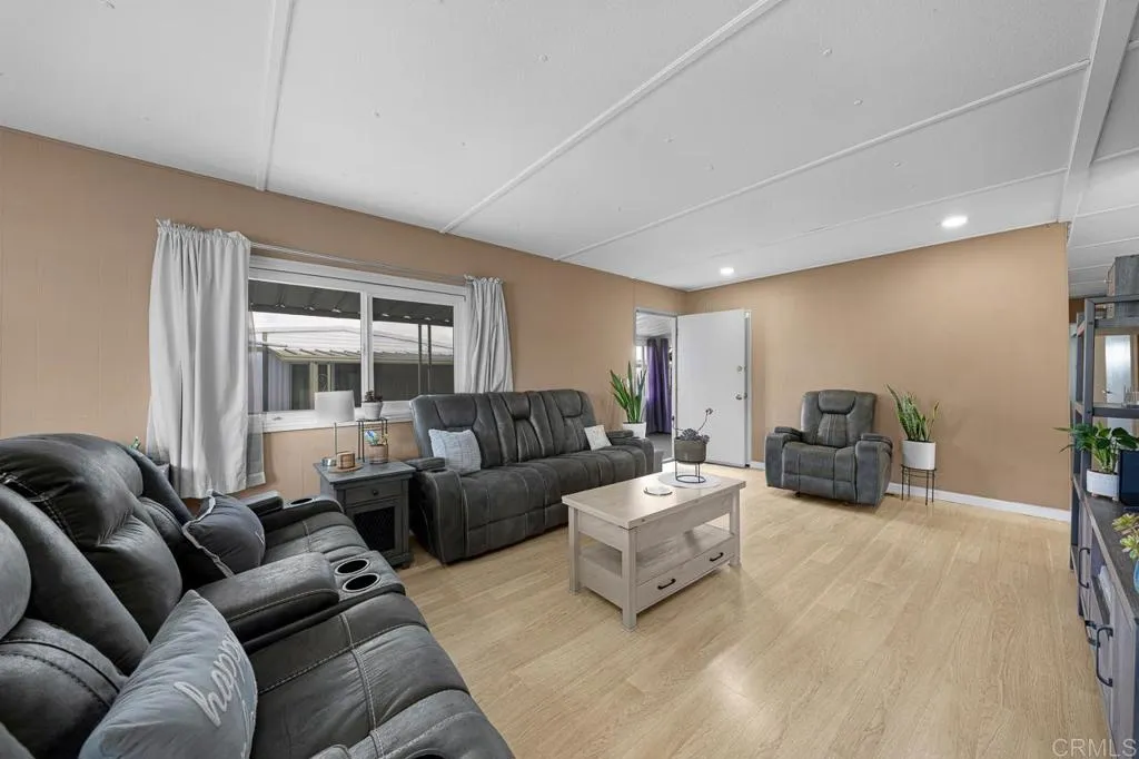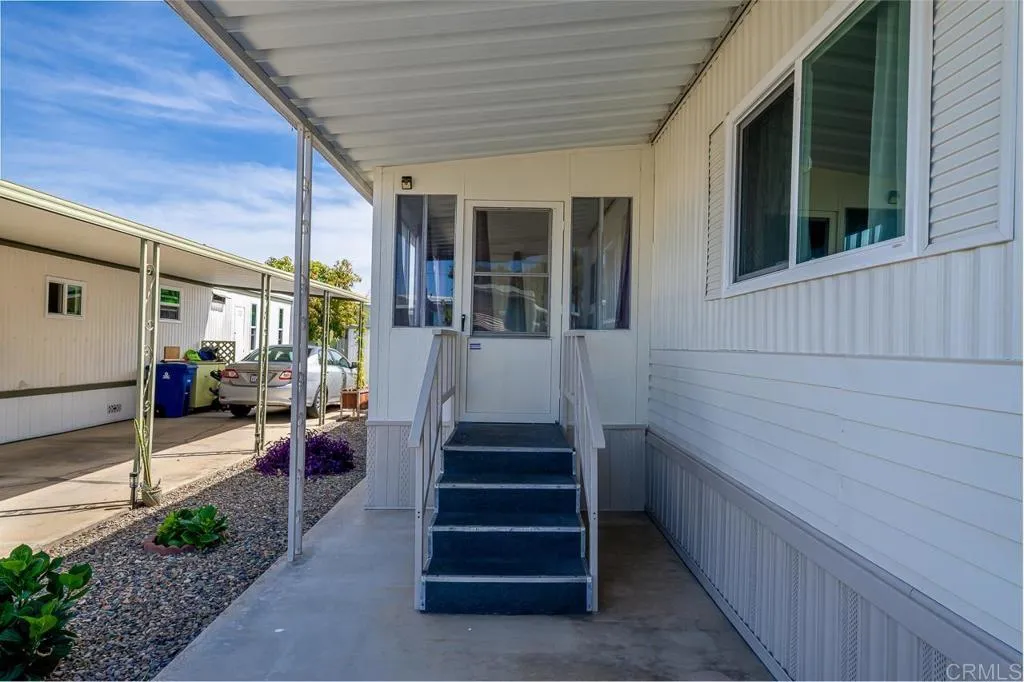 NEW KITCHEN. BONUS ROOM. OPEN FLOOR PLAN. NATURAL LIGHT. AMENITIES. PRIVACY. METICULOUSLY MAINTAINED PARK. PRIME LOCATION. Located in a quiet, private, and meticulously maintained 55+ community, this spacious two-bedroom home offers approximately 1,440 sq ft of comfortable living space with an open floor plan and flexible layout potential. The home features a brand-new kitchen with stainless steel refrigerator, range, oven, washer, dryer, and microwave included, along with carpet in the bedrooms and laminate flooring throughout the main living areas. A bright sunroom provides additional usable space for relaxing or entertaining. An additional storage shed is included, offering convenient extra storage. There is also ample space to start a garden and plant your own fruits and vegetables. The carport accommodates up to three vehicles, with additional guest parking available within the community. Community amenities include a pool, pool room, clubhouse, and reading room, all set within a peaceful, well-kept environment in a convenient Chula Vista location.