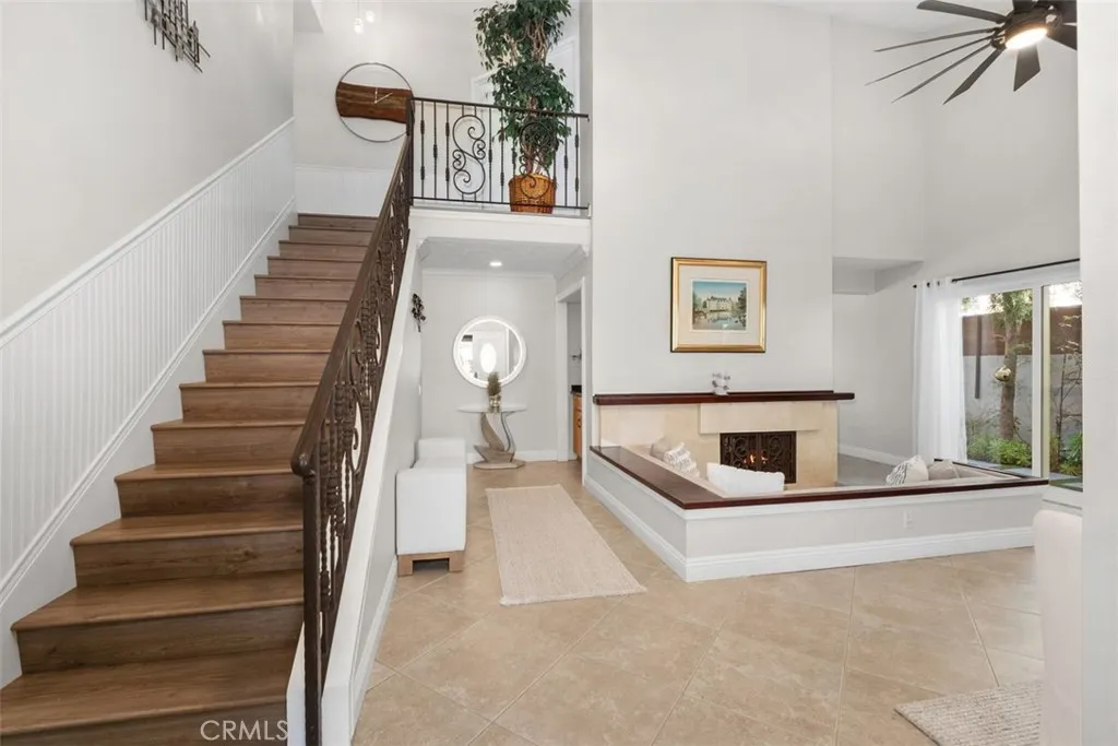 Exceptional, One-of-a-Kind Home with more than $300,000 in renovations! Designed for ultimate indoor-outdoor living & entertaining, this beautifully upgraded residence is ideally situated at the end of a quiet cul-de-sac on an expansive 7,500 sq. ft. private lot in one of the best locations in Lake Forest South. The resort-style backyard, fully remodeled in 2020, is the true centerpiece of the property & features a saltwater pool & spa with smartphone-controlled heating, lighting, & auto-fill system. A covered patio with outdoor kitchen, built-in barbecue, roller shades, & TV creates the perfect setting for gatherings. Lush landscaping & multiple seating areas provide privacy & a tranquil atmosphere. Inside, the home showcases soaring two-story ceilings & an elegant wrought-iron staircase, creating an open & inviting ambiance. The formal living room features a sunken seating area, two-sided fireplace, flowing seamlessly into the formal dining room with access to outdoor entertaining spaces. A separate family room with a built-in media center & fireplace offers more comfort for everyday living, while a main-level bonus room provides flexibility for a home office, library, or bedroom. The remodeled kitchen overlooks the serene backyard & is equipped with granite countertops, a 5-burner gas cooktop, double oven, new dishwasher, & microwave/convection oven. Upstairs, the expansive primary suite features vaulted ceilings, a fireplace, & a private balcony with pool & sunset views. The primary bathroom includes a remodeled step-in shower with frameless glass enclosure. All three bedrooms offer walk-in closets. Additional upgrades include owned solar(2018) & newer roof, whole-house repiping (2020), new HVAC system (2017), new sliding doors & windows, remodeled kids’ bathroom with frameless door, luxury vinyl plank flooring, fresh interior paint upstairs, updated lighting & chandeliers, new high-quality granite in the kitchen & laundry room, Redesigned & remodeled side yard & Powder room(all in 2023). Conveniently located within walking distance to the lake & the Sun & Sail Club. HOA amenities include a 25-yard lap pool, diving & exercise pool, spa; children’s wading pool; fitness center; six tennis courts; twelve pickleball courts; basketball half-courts; sand volleyball; a Tot Lot playground; Youth Center; clubhouse; picnic & BBQ areas; & an amphitheater. No Mello-Roos & low HOA dues. Just minutes from freeways, Irvine Spectrum, shopping, dining, & local schools!