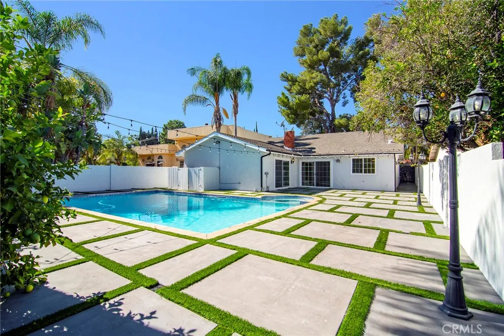 An incredible "South of the Blvd" lease opportunity on this gated single-level showplace. A most spectacular Pine welcomes your arrival & stands guard over the residence. Large pavered drive accommodates parking for plenty. Inside this light & bright home, gorgeous flooring, vaulted ceilings & fresh paint set the stage. Entertain in the large living room with fireplace & family room with fireplace & wet-bar. Open & bright kitchen affords beautiful cabinetry & a selection fine appliances, including a professional grade Thermador stove/oven. Your primary suite features A-framed ceilings, large walk-in closet & a luxurious bath with a soothing soaking tub & a tranquil rain-head shower. Three additional bedrooms, stunning hall bath, additional powder bath, interior laundry with machines included & a Tesla car charger further enhance. Outside, beautiful rear grounds adorned with fruit trees await. Refreshing pool & spa surrounded by distinct concrete decking will impress. Just a half block to the Blvd & all the shops & eateries it has to offer. Sought-after schools too....Don't miss!