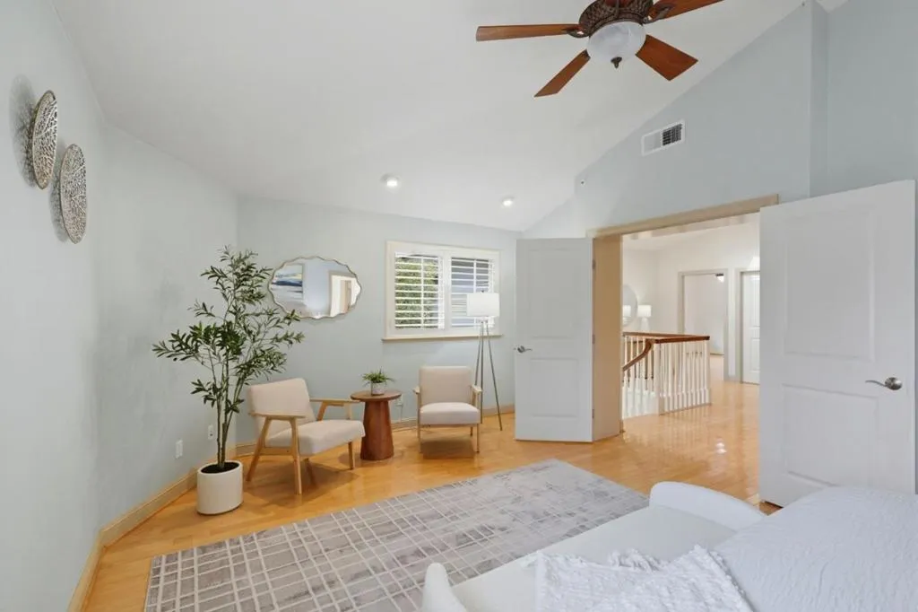 Rancho Carbonera Estates light-filled and beautifully maintained home. A formal entry opens to spacious living, dining, and family rooms featuring high ceilings, hardwood floors, and plantation shutters. The granite-counter kitchen offers a breakfast bar, eat-in area, stainless steel appliances, gas range, and double ovens. Separate laundry room for added convenience. Ground level full bath. Upstairs features a generous primary suite with ensuite bathroom including a soaking tub, walk-in shower, double sinks, and a custom built-in closet. Three additional bedrooms and a full bath with double sinks and a tub/shower complete the upper level. Quality craftsmanship throughout. The backyard showcases mature landscaping, a gas fire pit, and space for a hot tub perfect for relaxing or entertaining. Located on a quiet cul-de-sac, close to Pasatiempo and DeLaveaga, with easy freeway access to Santa Cruz and Silicon Valley.