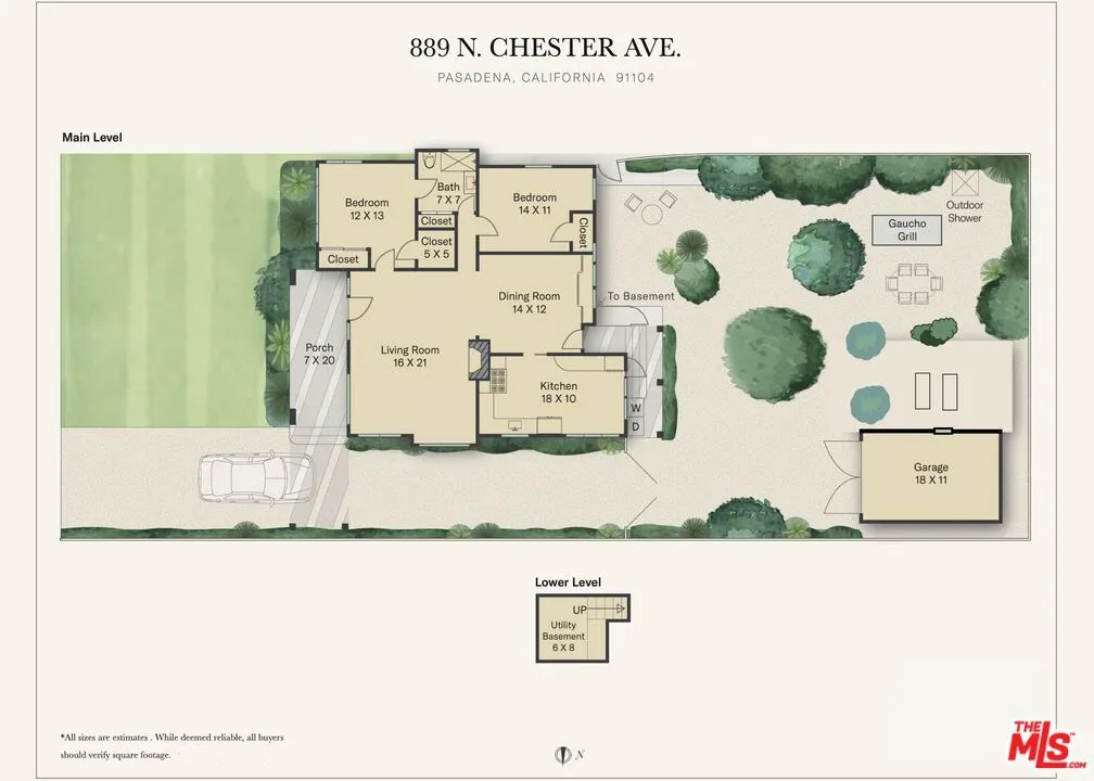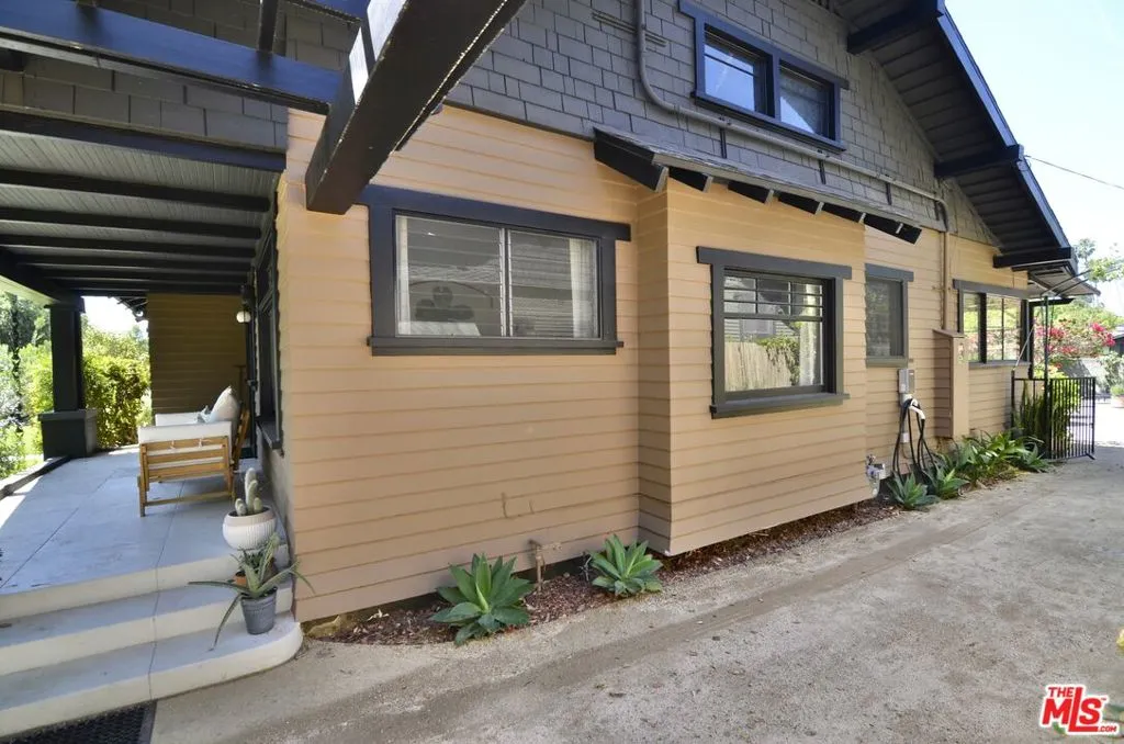 Historic 1907 Bungalow Heaven handsome Craftsman awaits its new steward. Built and designed by prominent developer Henry C. Deming, this updated 2-bedroom, 1-bathroom home offers 1,160 sq ft, while sited on a generous 7,606 sq ft lot. The home is anchored by its strong horizontal proportions and cross-gabled roofline. Wrapped in clapboard on the lower story with shingles hugging the gable ends, a front-gabled porch occupies the north two-thirds of the facade. Broad windows with rows of small lights across the top and extended lintels provide additional horizontal emphasis; a hallmark of classic Craftsman design. A wooden pergola extends north from the house, spanning the driveway. From the front porch, step through the home's entrance, flanked by half-height sidelights, and into a light-filled living room featuring restored hardwood floors and a decorative fireplace. The spacious formal dining room showcases an original built-in buffet with leaded glass cabinet doors, while a door to the backyard enhances indoor/outdoor entertaining. The remodeled kitchen includes a breakfast area and offers ample cabinetry for cooking and storage. A coffee bar provides additional counter space for prep needs. The vintage Wedgewood gas stove nods to the home's period, while a newer refrigerator and dishwasher deliver modern convenience. Just outside the kitchen is a side-by-side covered laundry area with washer and dryer. The sunlit, modest-sized bedrooms, share a light-filled Jack-and-Jill bathroom featuring beautiful new ceramic tile, sink, and shower. An original large built-in cabinet provides generous linen storage and shelving. The front yard offers a large grassy area, while the backyard provides room for an ADU. Take advantage of the backyard and escape to the outdoors with views of the San Gabriel Mountains. Cool off on those warm summer days with the outdoor shower. Enjoy alfresco dining utilizing the built-in Argentine barbecue. Inspired by the neighborhood's past, the property includes a mini orchard with kumquat, orange, lemon, fig, olive and mandarin trees. The driveway and backyard feature decomposed granite, providing a more sustainable landscape solution. The California basement, with exterior access provides additional storage and houses the new water heater. The long driveway with a one-car garage, offers ample off-street parking, along with access to an electric vehicle charger. Located just blocks away from the neighborhood's McDonald Park. Experience the strong sense of community and enjoy nearby favorites such as Millie's Caf, Roma Market, The Italian Deli Co., Bacchus Kitchen + Wine Bar, Lavender & Honey Espresso Bar, Seed Bakery, Madeline Garden Bistro & Venue, Bistro 45, Union Restaurant, Old Sassoon Bakery, Fika Fika Coffee, Bloomfield Creamery, and Erewhon. Come see why this special home is listed on the National Register of Historic Places.